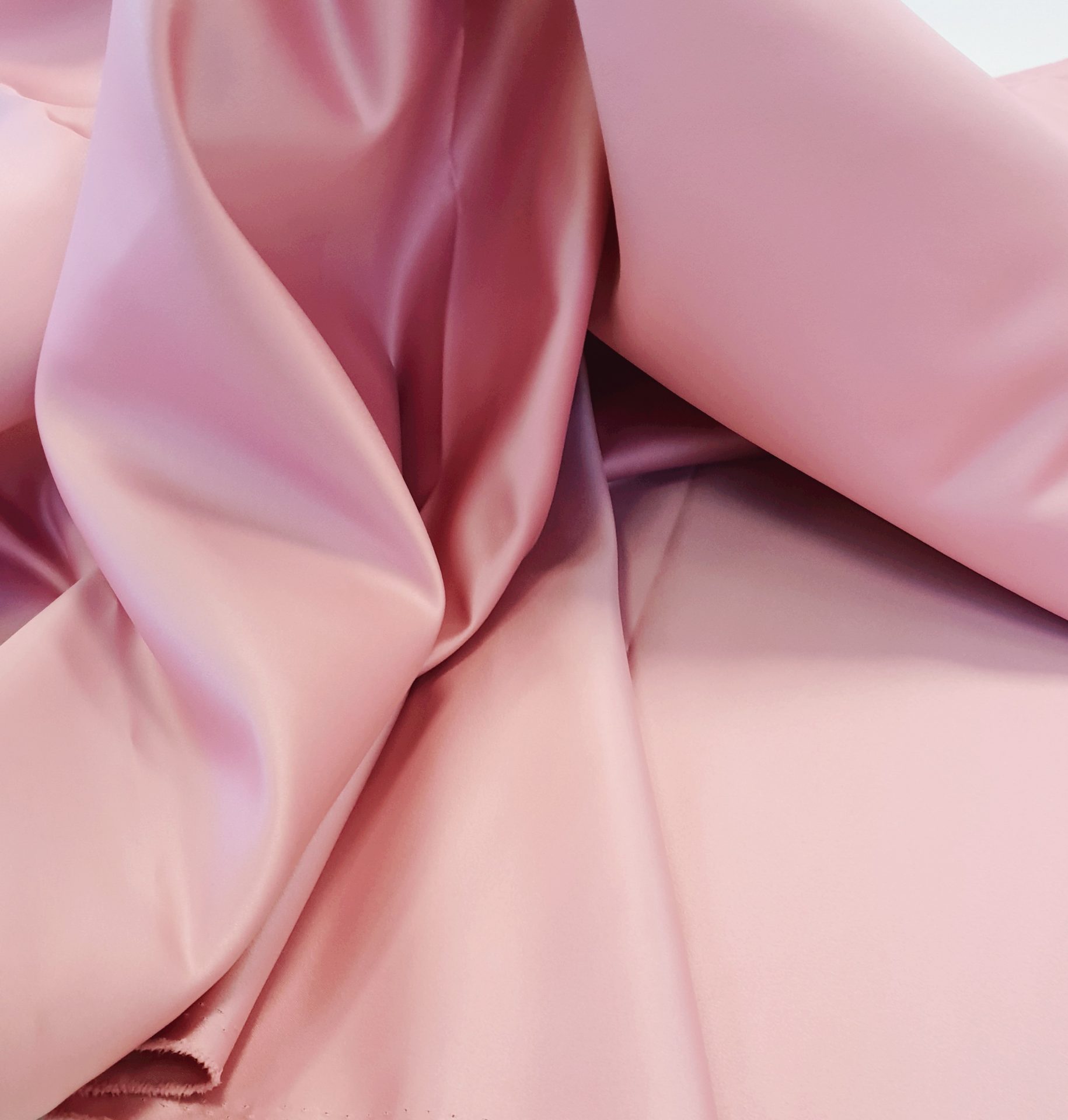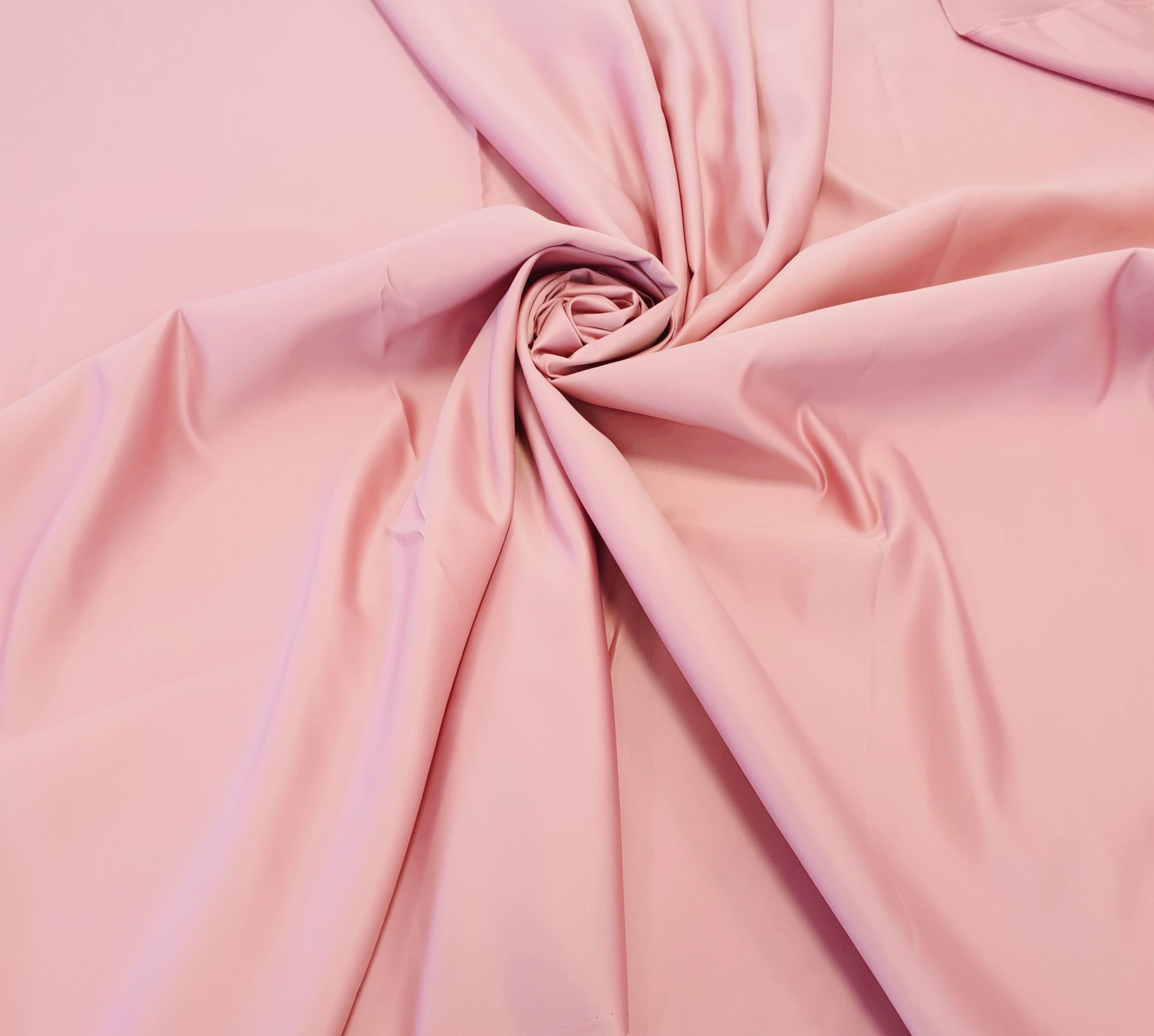 Tafta Duchesse roz prafuit are o textura cu tinuta, fara elastan, pretabila pentru rochii de volum sau cele care au nevoie de un aspect rigid.