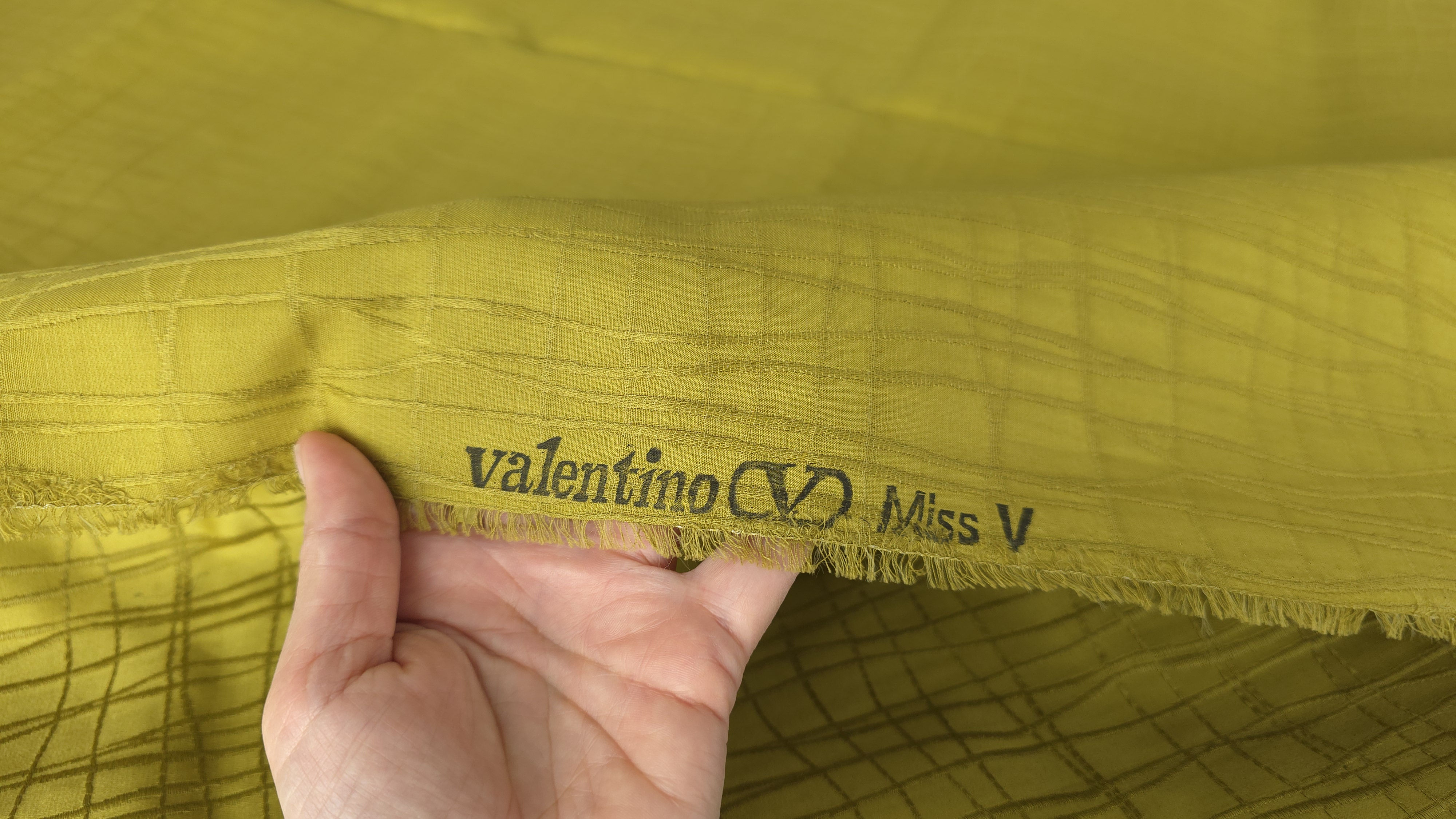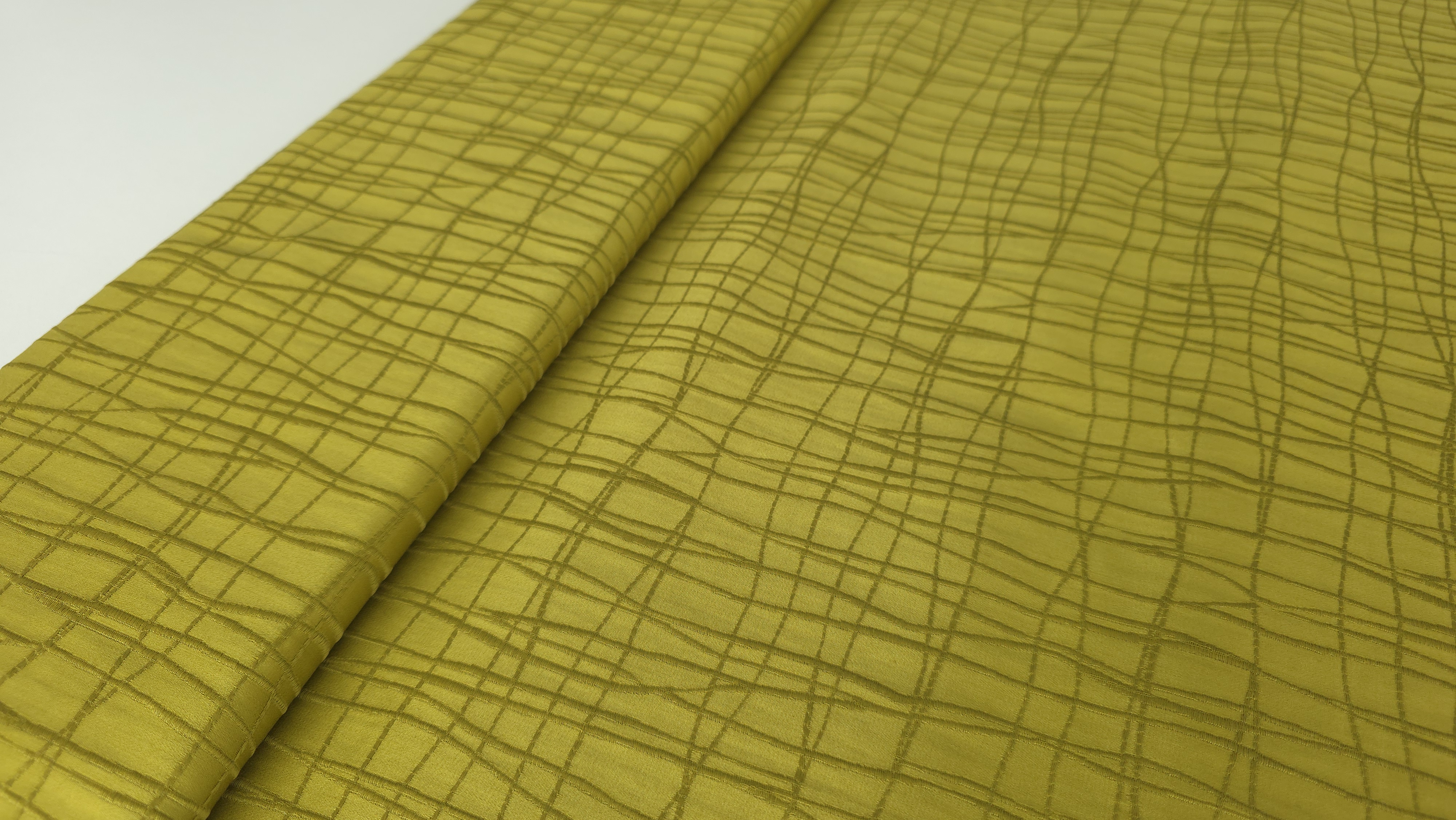 Tafta brodată din bumbac olive VAL901D, cu structură tip jacquard, luciu discret și ținută fermă, ideală pentru rochii elegante, sacouri și fuste cu formă.