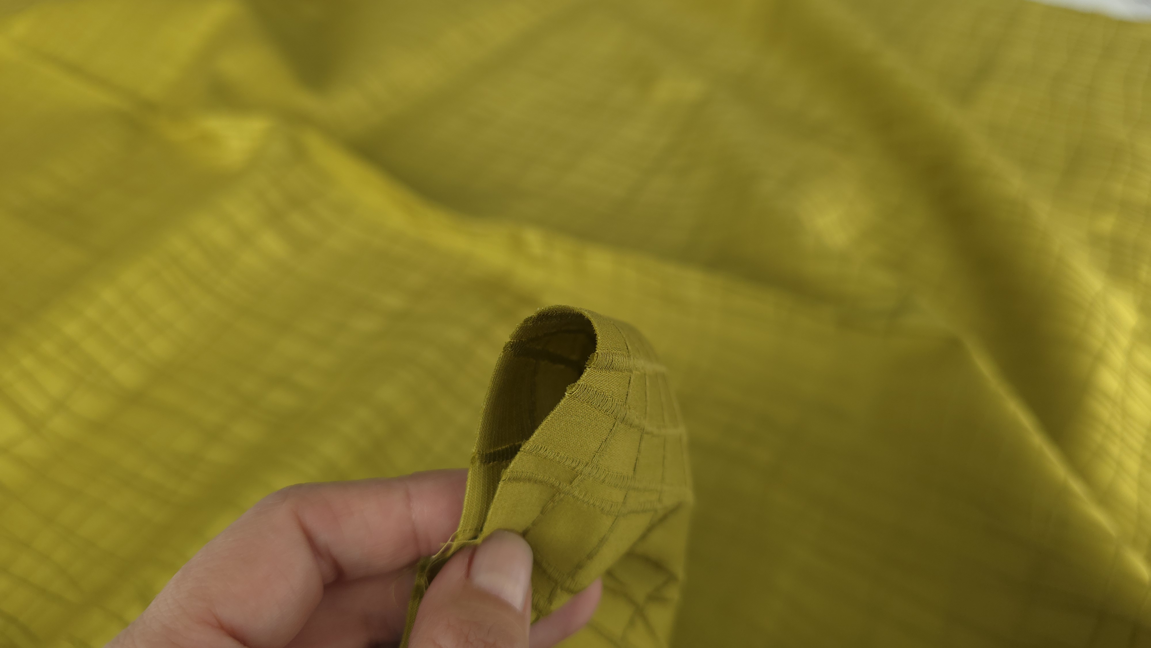 Tafta brodată din bumbac olive se prelucrează bine în atelier. Se taie curat și își păstrează forma pe parcursul coaserii. Cusăturile se așază corect, iar materialul răspunde bine la presare la temperaturi medii.
