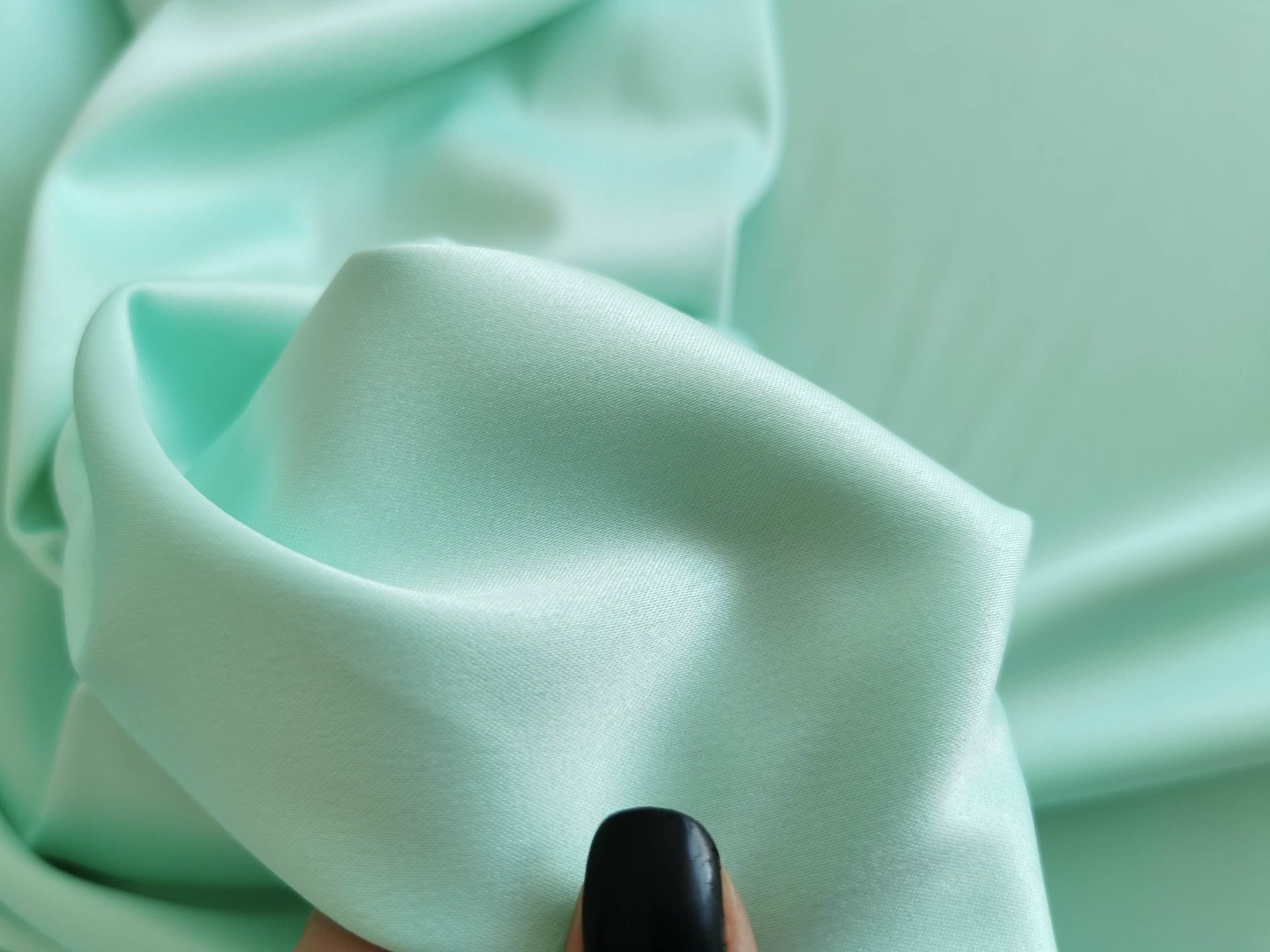 Tafta Basic minty este o tesatura plina, cu cadere frumoasa si nu foarte lucioasa.