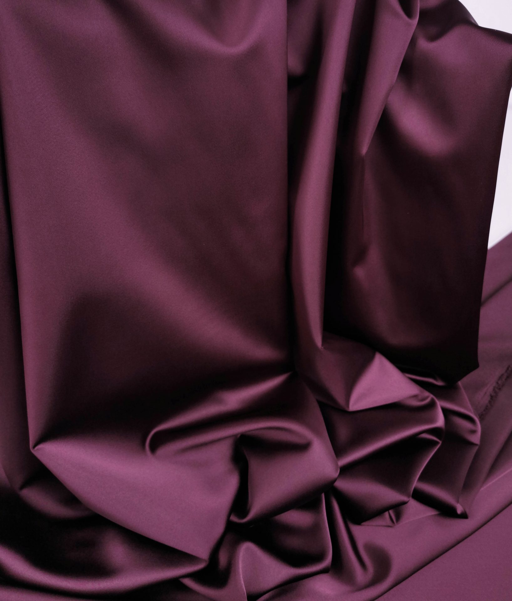 Tafta Satinata mov pruna prezentata este o tesatura cu luciu temperat si finisaj de foarte buna calitate.