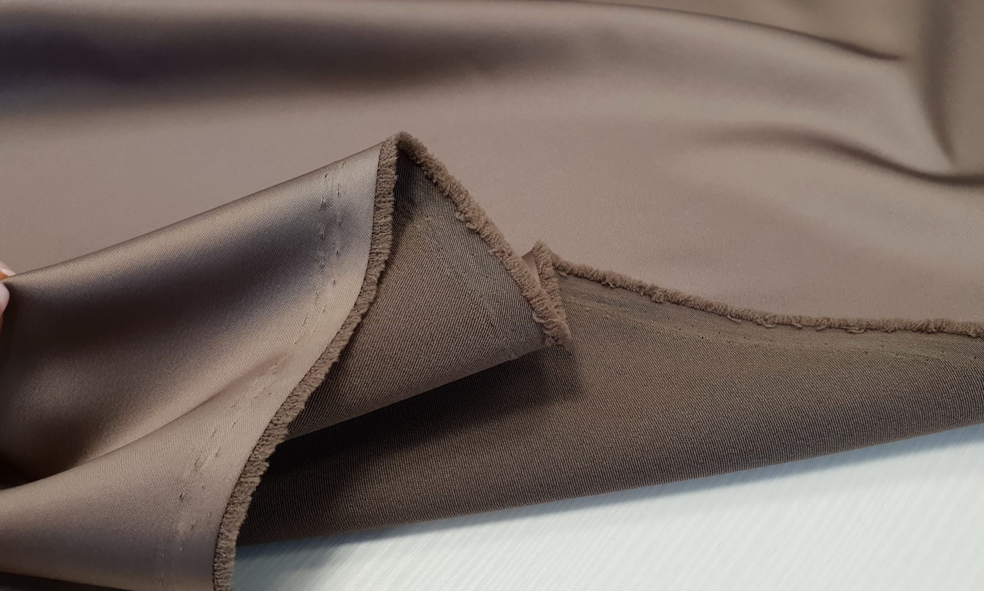 Tafta Oscar poate fi folosita pe ambele parti: o fata neteda cu luciu temperat si o fata mata, texturata (linii fine transversale)