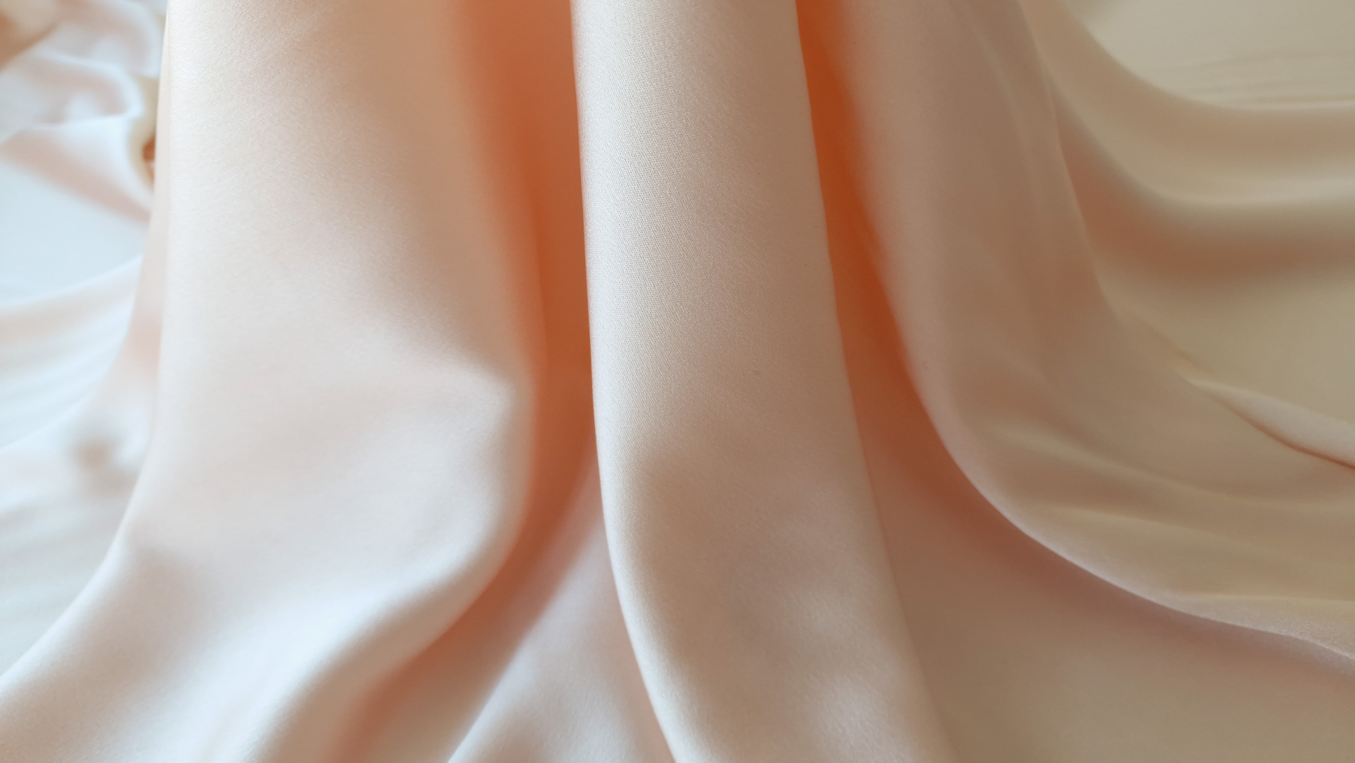 Cady elastic cu vascoza light peach VER1472, cu textura fluida, opaca lucioasa, satinata si foarte placuta la atingere, cu o elasticitate usoara care permite libertate de miscare. Ca textura, este similar satinului dens, insa de calitate net superioara. Aceasta tesatura este cu doua fete, formata dintr-o urzeala dubla, cu o densitate mare de fibre, pe o parte este aspra, pe alta parte este stralucitoare.