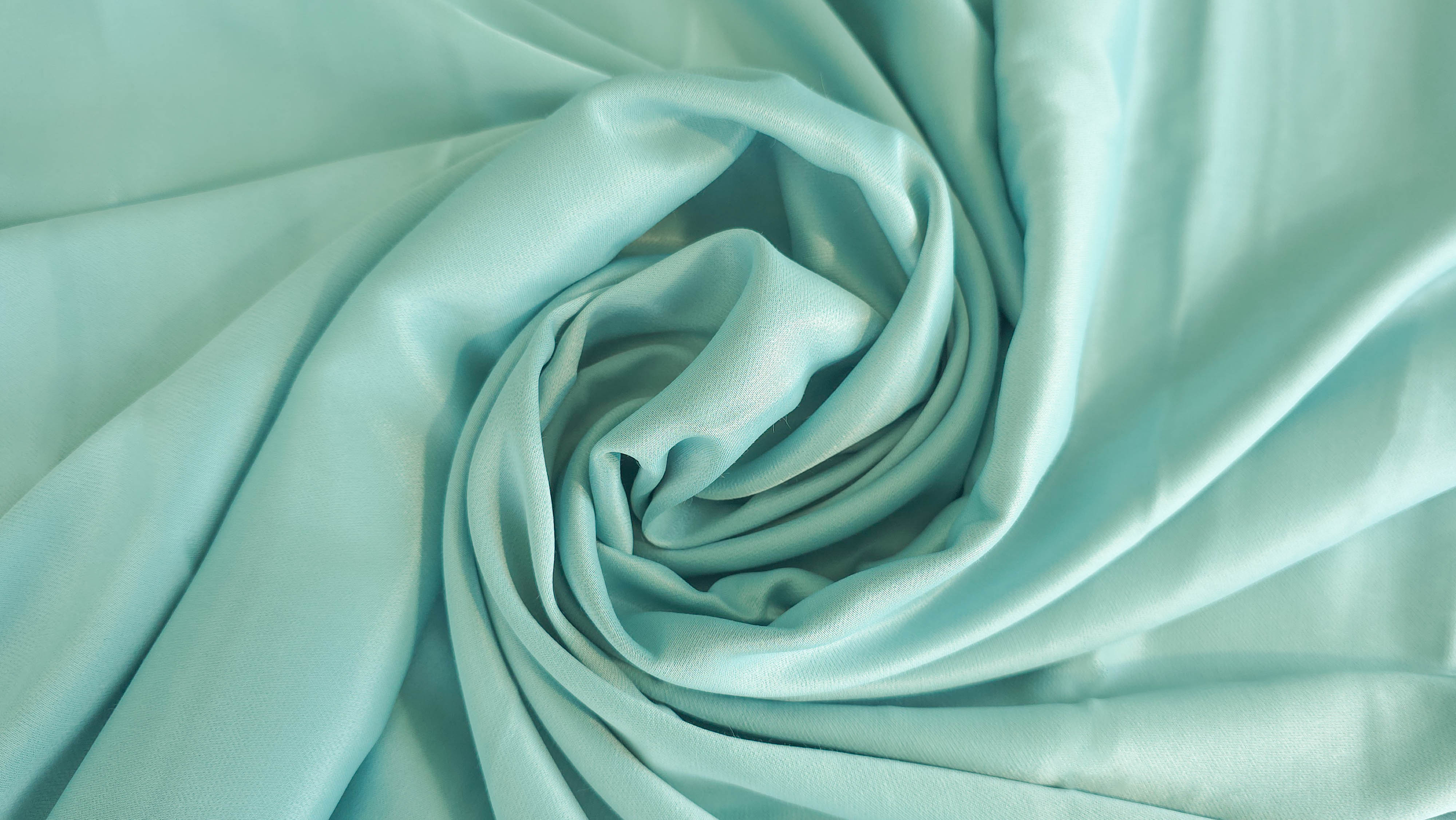 Cady turquoise pastel din vascoza cu bumbac, țesătură fluidă, opacă și satinată, remarcabilă prin atingerea sa plăcută. Similar unui satin, această țesătură cu densitate mare, prezintă două fețe: una netedă și strălucitoare, cealaltă aspră și mată. Este ideal pentru confecționarea rochiilor elegante, fie de zi sau de seară, dar și pentru fuste și bluze. Vă invităm să ne urmăriți și pe rețelele de socializare pentru a rămâne informați cu privire la ultimele noastre actualizări, oferte exclusive și surse de inspirație. Alăturați-vă comunității noastre online pe Facebook și Instagram. Vă așteptăm cu drag!