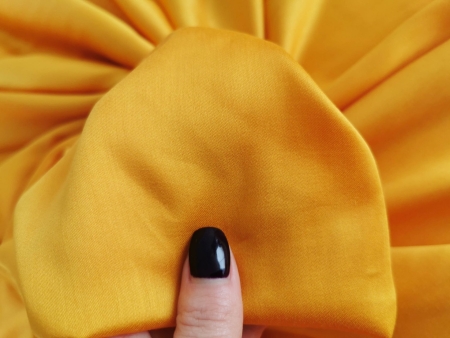 Tesatura galben miere cu matase naturala si bumbac opaca, subtire si placuta la atingere.