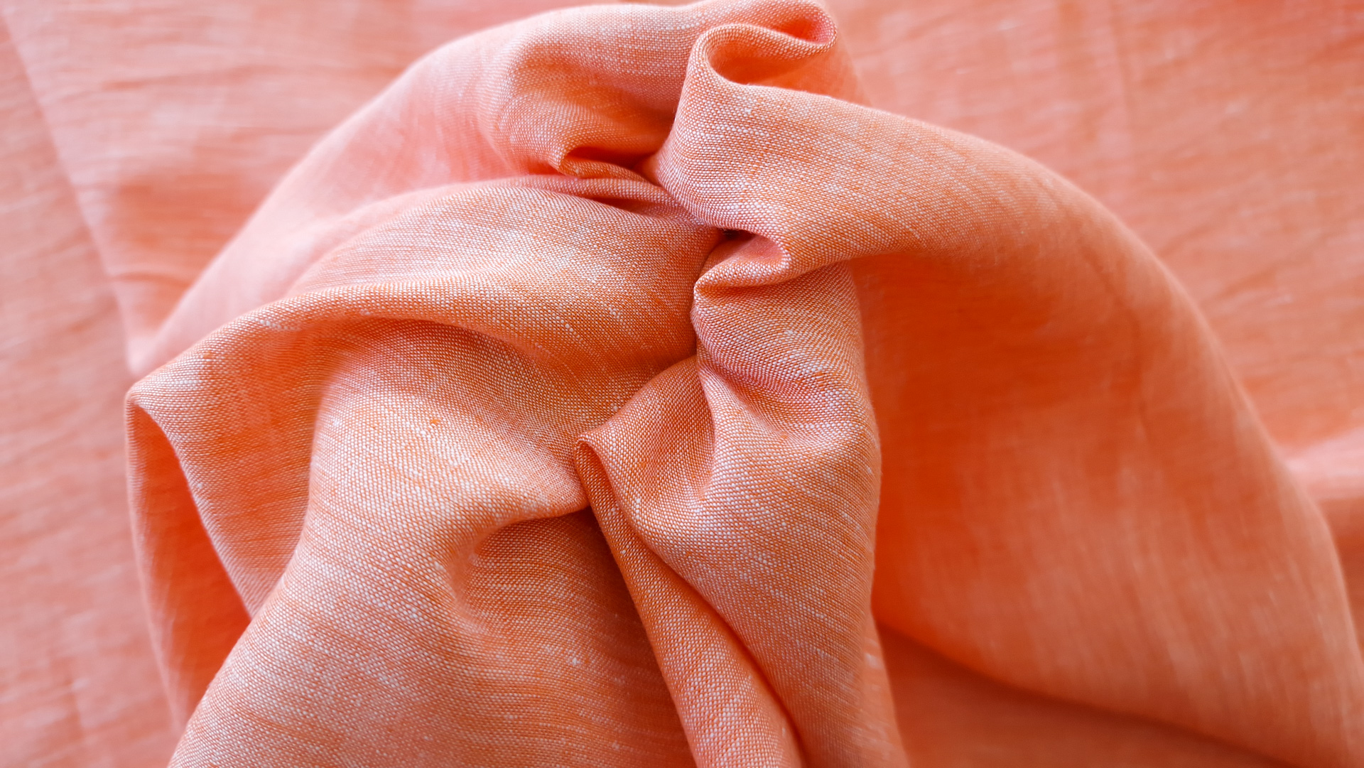 Tesatura naturala premium din 100% in portocaliu, foarte placuta la atingere, plina, ideala pentru realizarea articolelor din sezonul cald. Datorita compozitiei naturale, acest material are un grad ridicat de respirabilitate, ceea ce il face foarte placut la atingere.