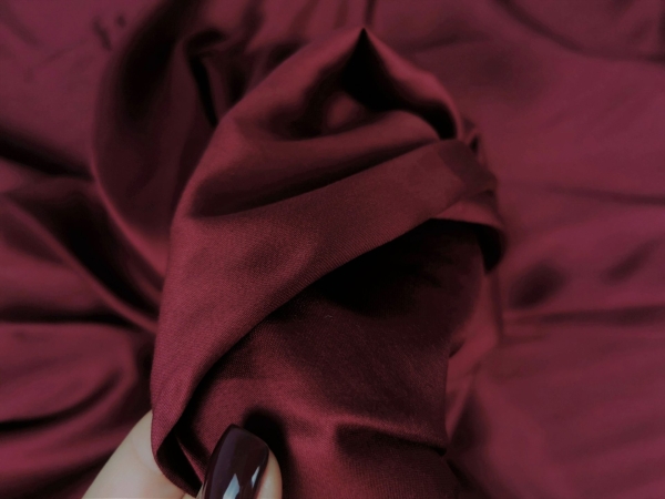 Tesatura visinie din matase naturala si bumbac opaca, subtire si placuta la atingere.