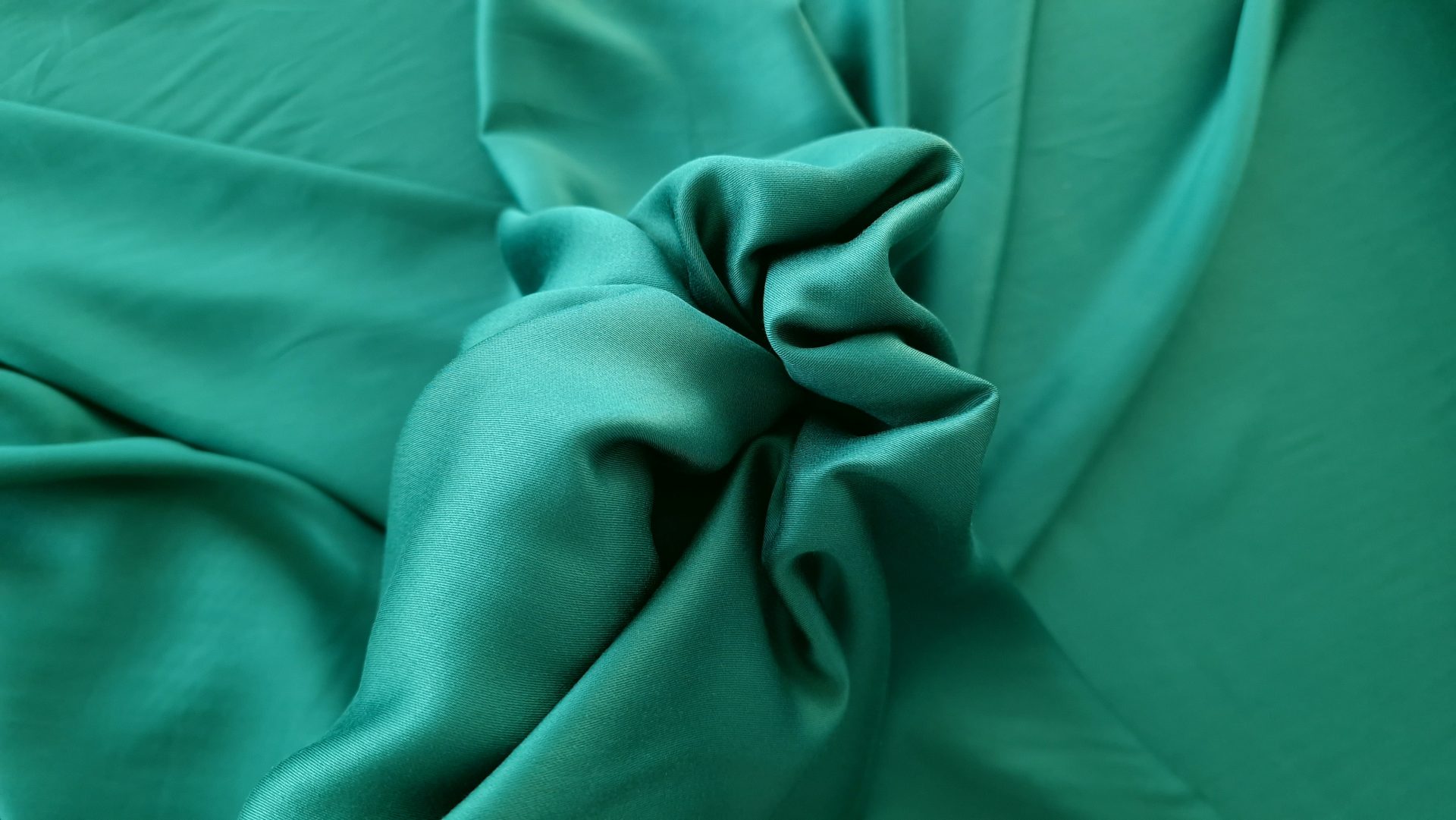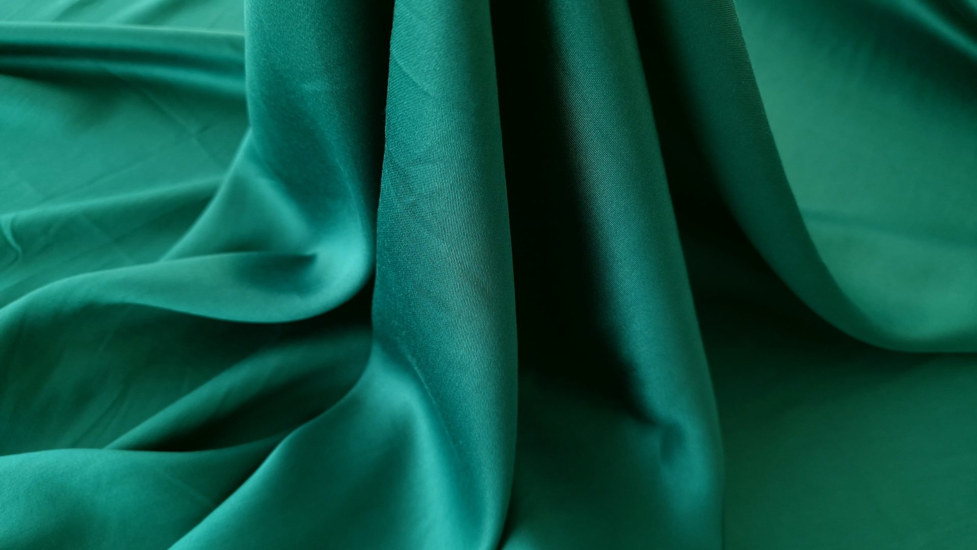 Tesatura cu matase naturala si bumbac verde inchis, opaca, subtire si placuta la atingere.