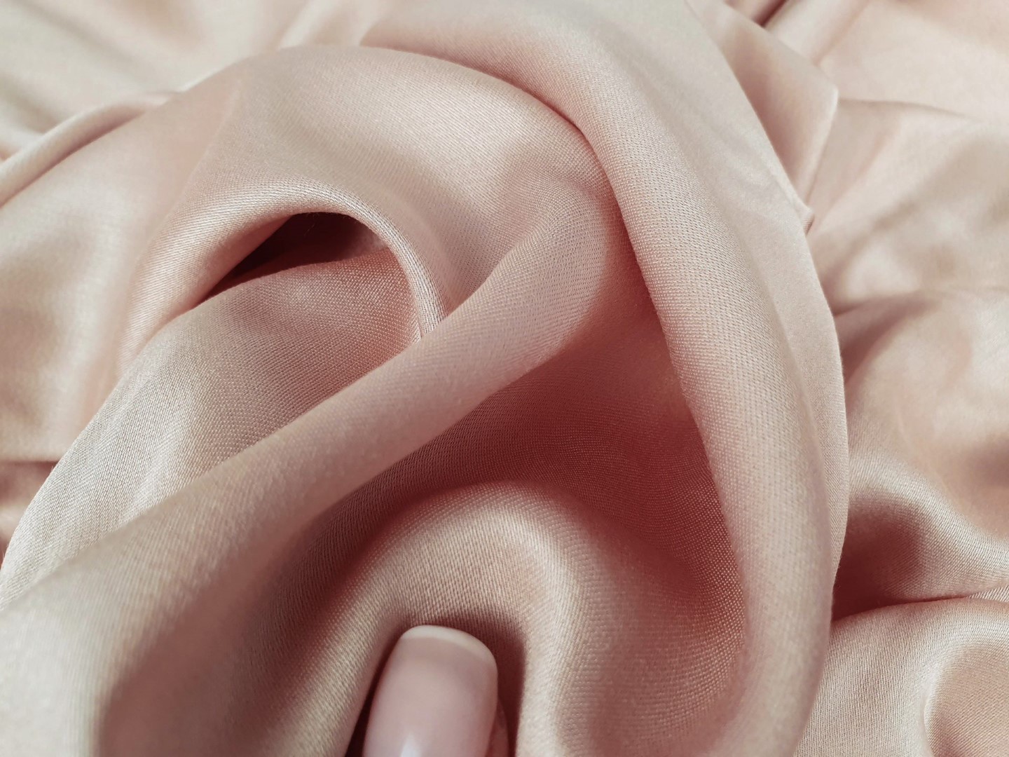 Tesatura nude rose cu matase naturala si bumbac, opaca, subtire si placuta la atingere.