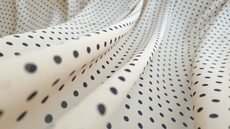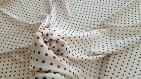 Voal Georgette matase naturala cu buline, material versatil perfect pentru orice sezon și ocazie fiind alegerea perfectă pentru rochii vaporoase, bluze sofisticate sau eșarfe fine, oferind o textură mătăsoasă și o drapare impecabilă. Fabricat din mătase naturală, acest voal este extrem de fin și plăcut la atingere, oferind confort și eleganță în purtare. Crepajul subtil al materialului adaugă un efect vizual atrăgător, conferind fiecărei piese vestimentare un aspect modern.