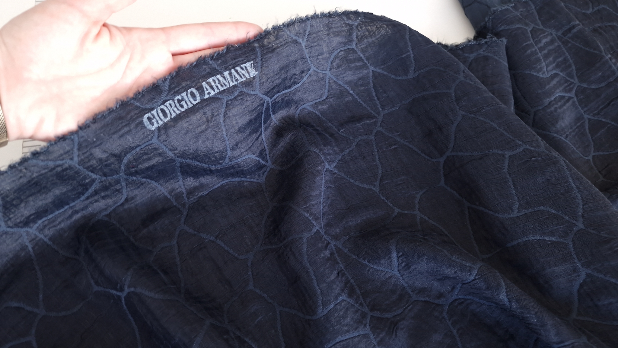 Giorgio Armani tesatura naturala texturata, usoara, realizata din doua straturi de voal suprapuse, brodate cu fir de in.