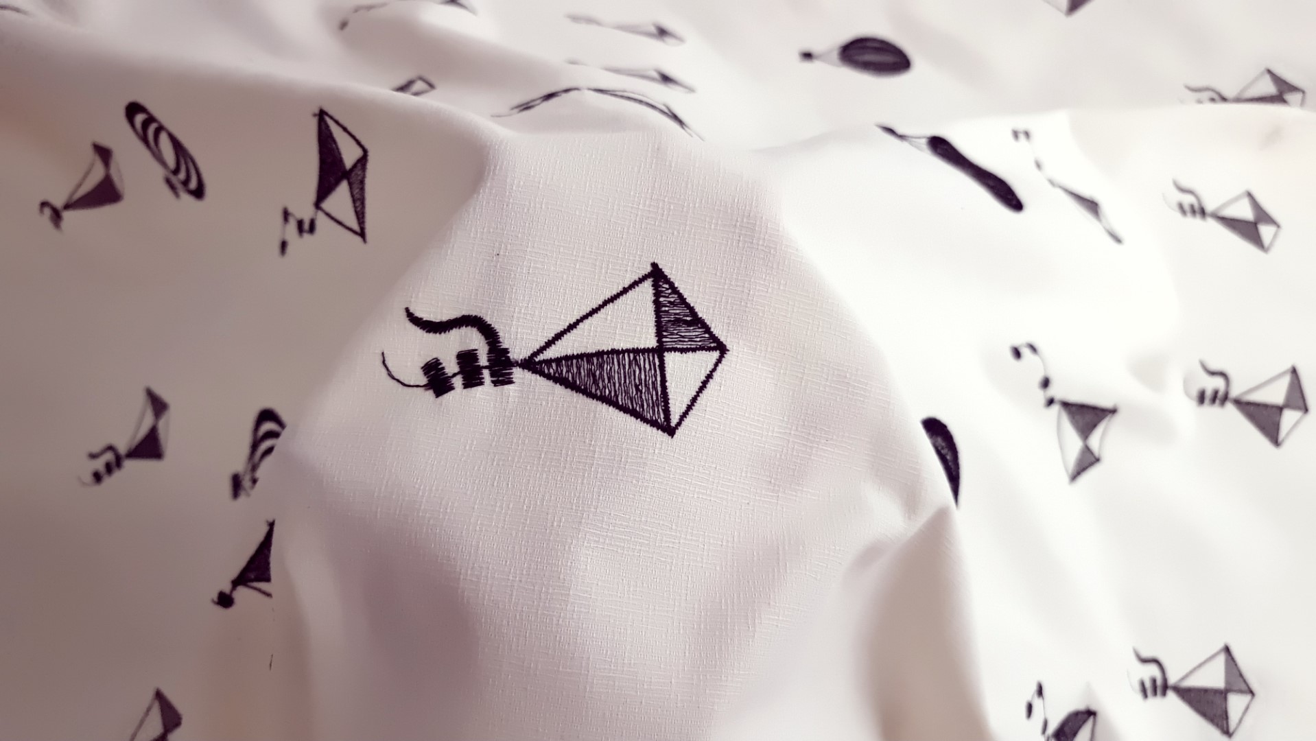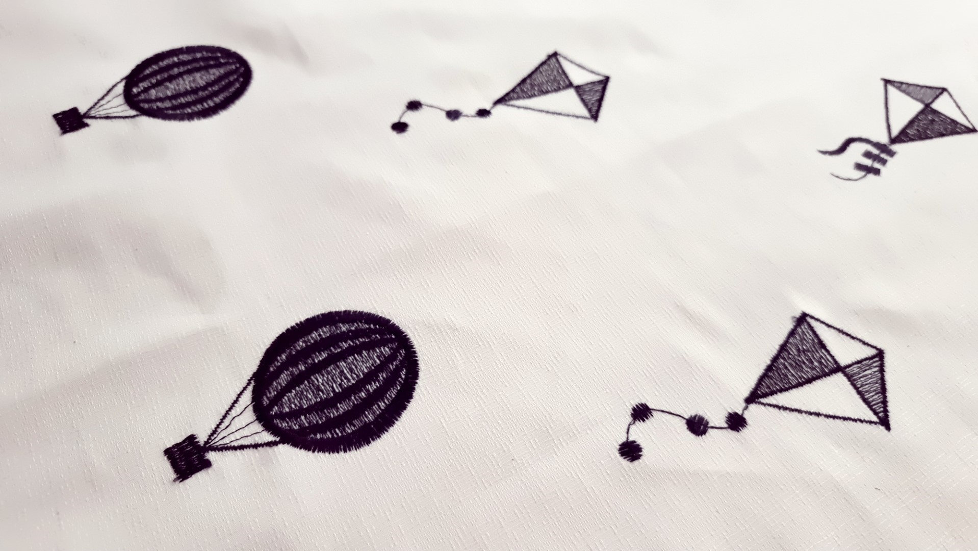 Caracteristici Jacquard din bumbac cu model brodat balloons&kites THB857 :