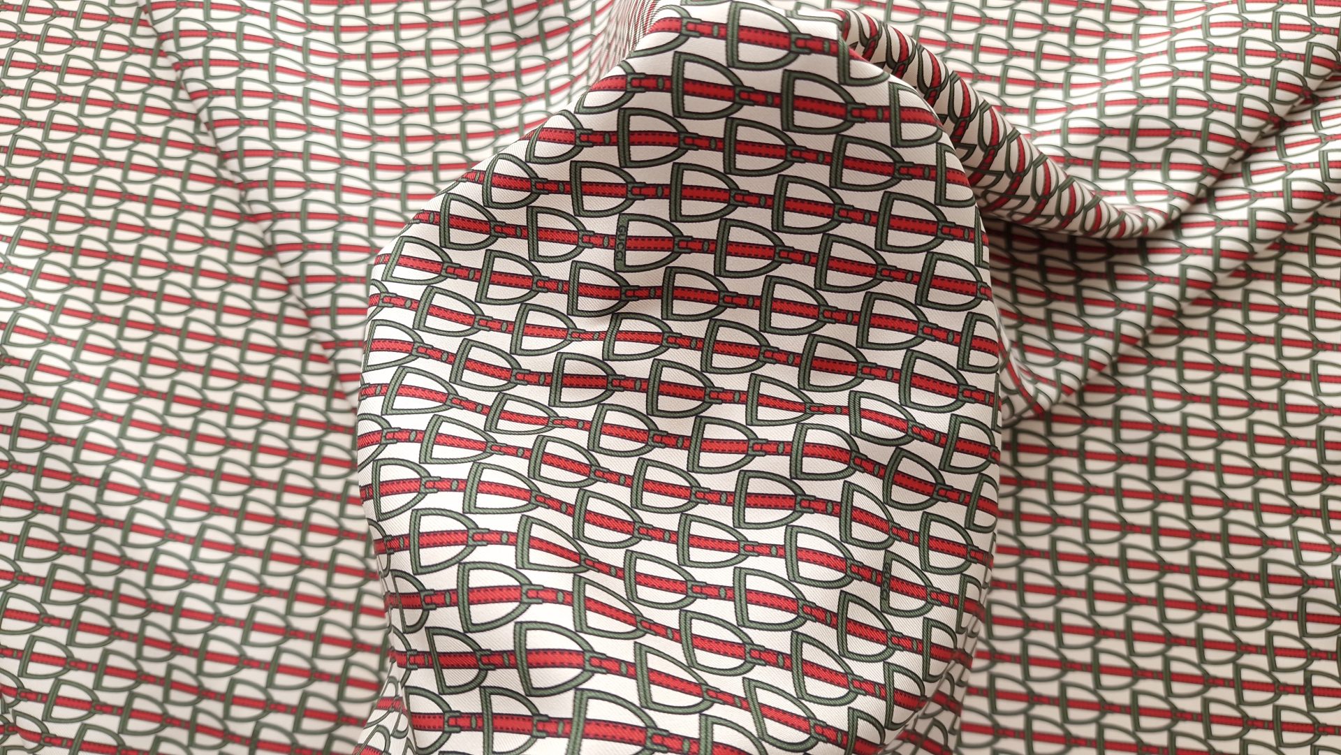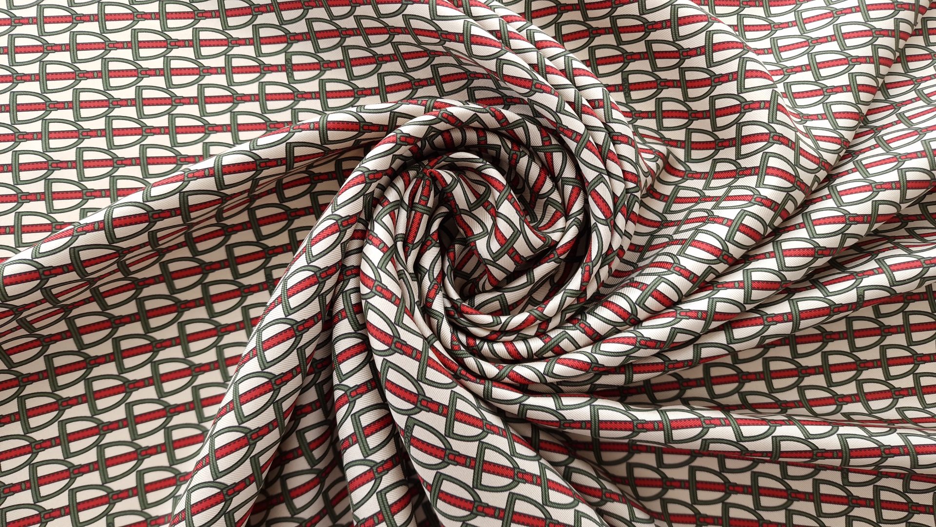 Twill din 100% matase naturala cu monograma GUC1549, fina, subtire, de inalta calitate, cu model multicolor distribuit pe intreaga suprafata, de inspiratie Gucci.