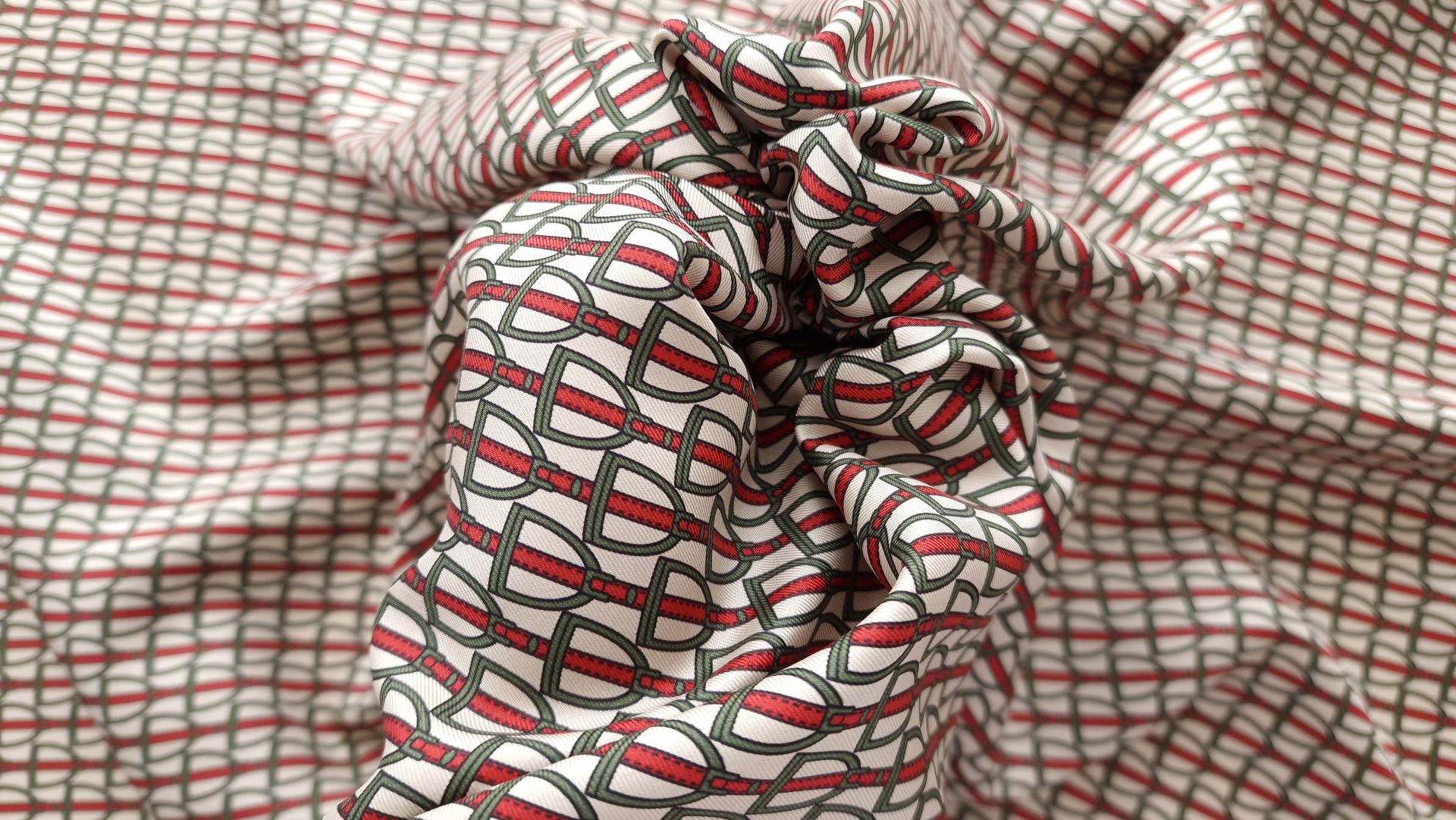 Twill-ul din mătase naturală imprimat este o țesătură fină și luxoasă, perfectă pentru a crea rochii elegante, bluze, fuste sau eșarfe. Mătasea naturală este o fibră nobilă, cunoscută pentru textura sa fină, moale și lucioasă. Este o țesătură respirabilă și delicată cu pielea, făcând-o ideală pentru a fi purtată în orice anotimp.