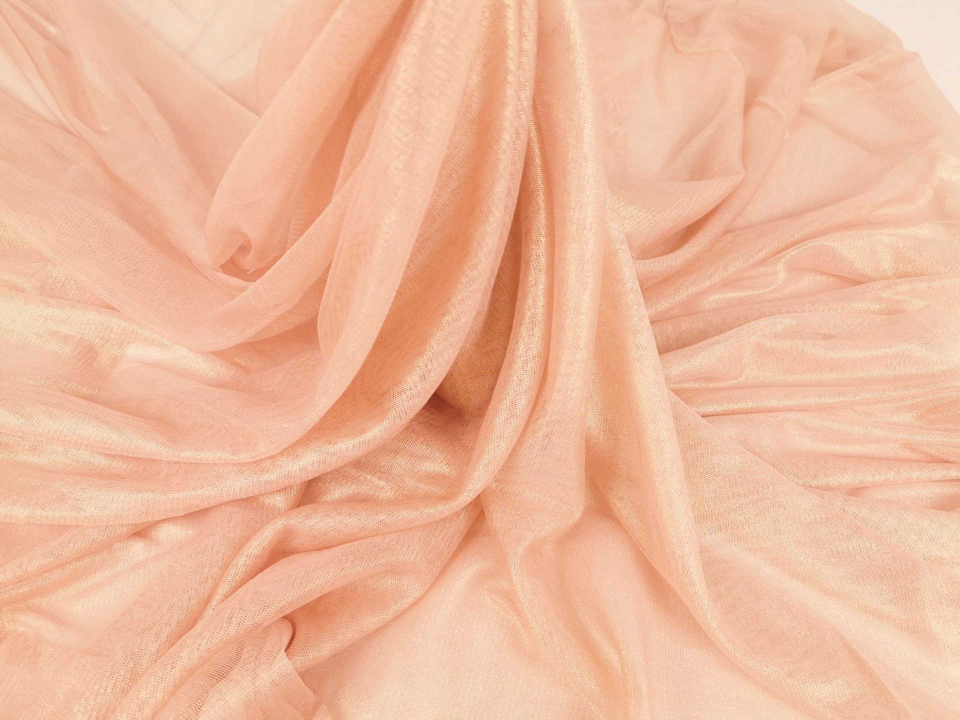 Tulle nude piersica cu pelicula aurie din matase naturala