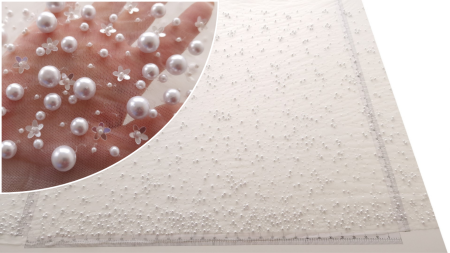 Atentia cu care au fost cusute individual face ca in momentul taierii materialului, perlele sa nu se desprinda de pe tul chiar daca se afla la doar 1-2 mm de marginea taiata, conferind usurinta in procesul de lucru.