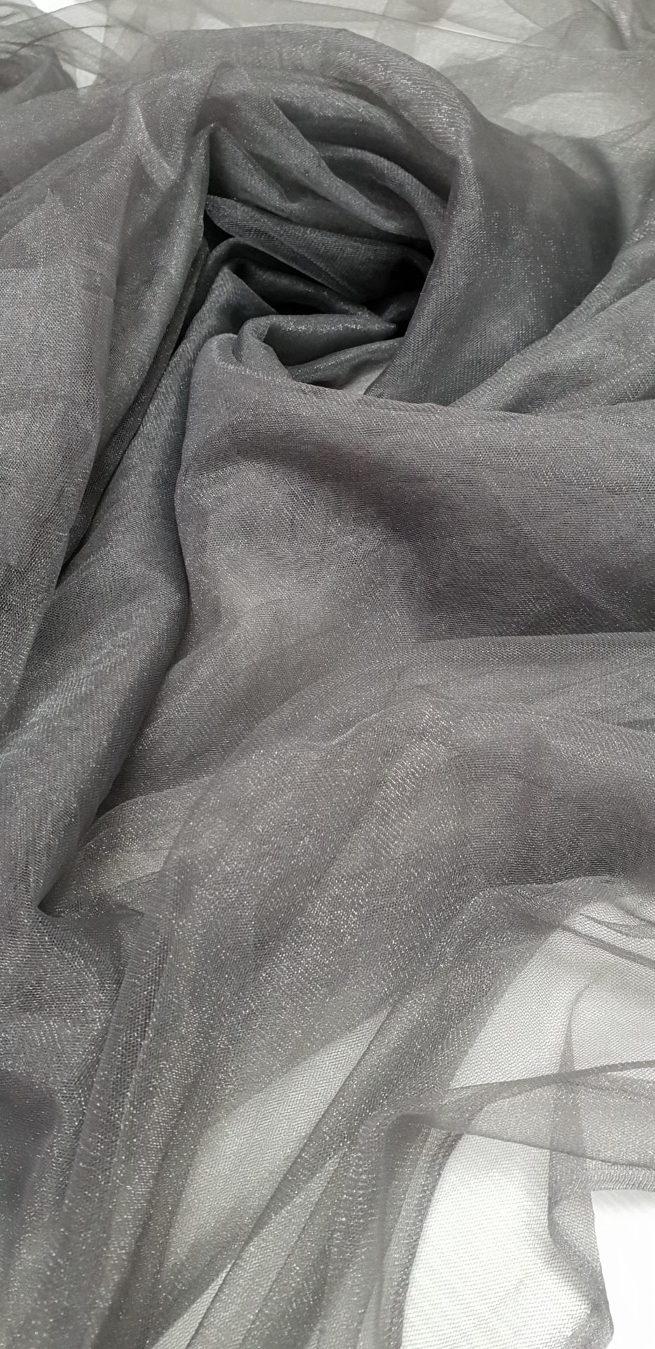Tulle fin gri sobolan cu aspect sidefat.