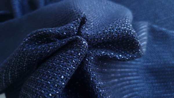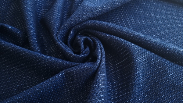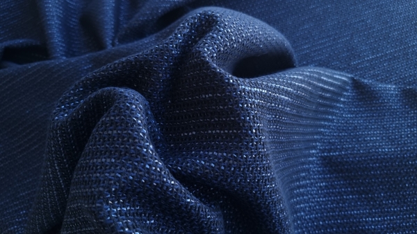 Stofa bleumarin impletita cu fir rafie, de grosime medie.