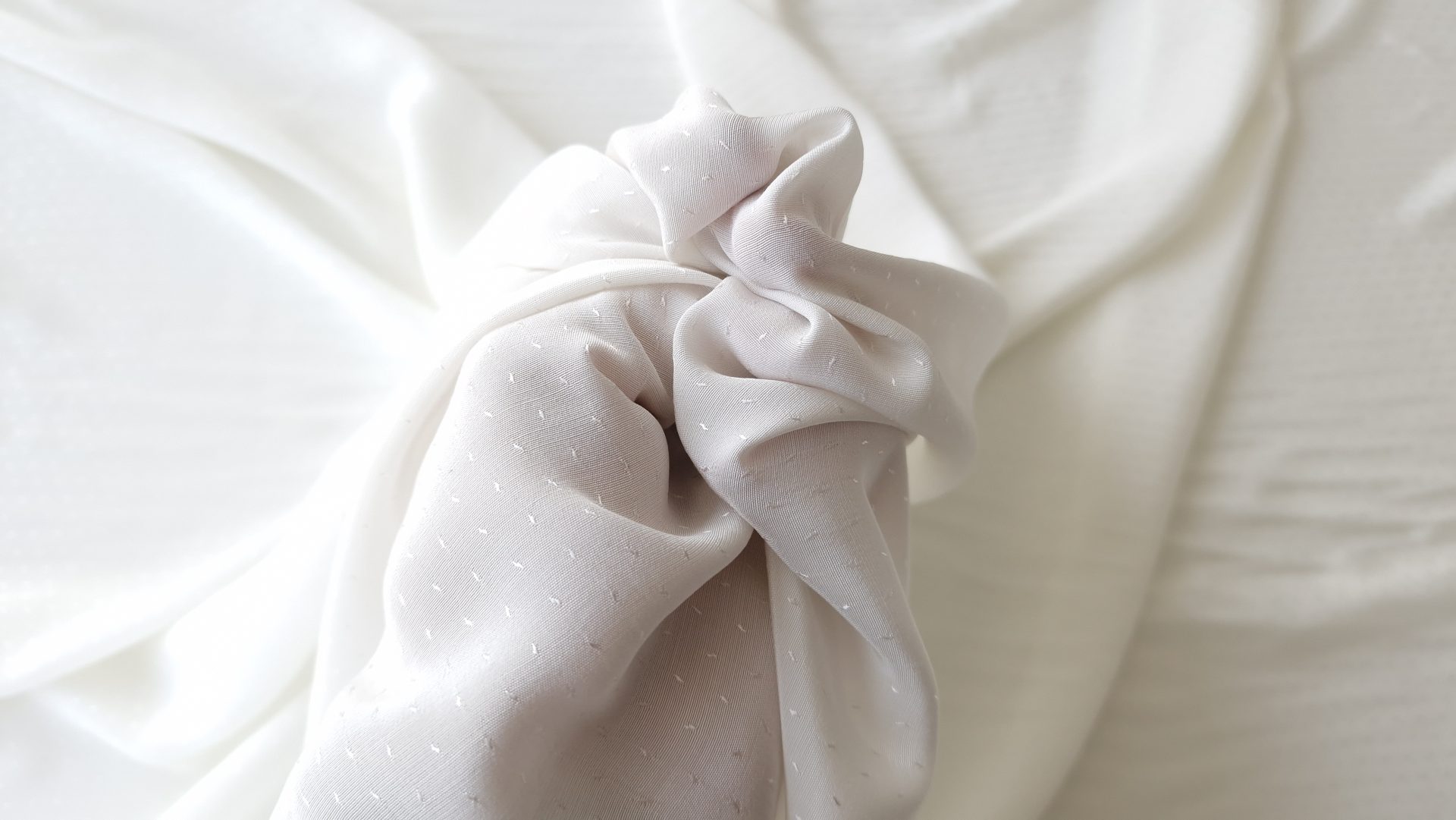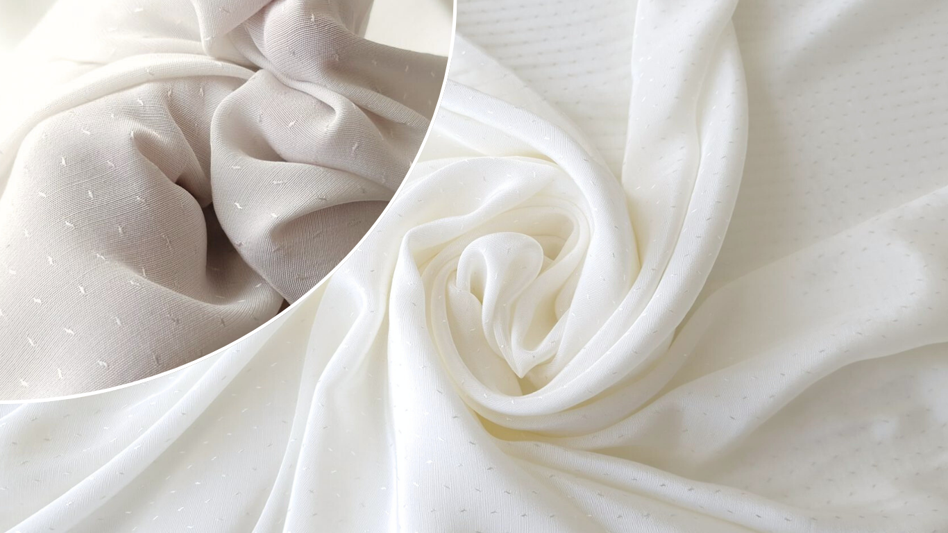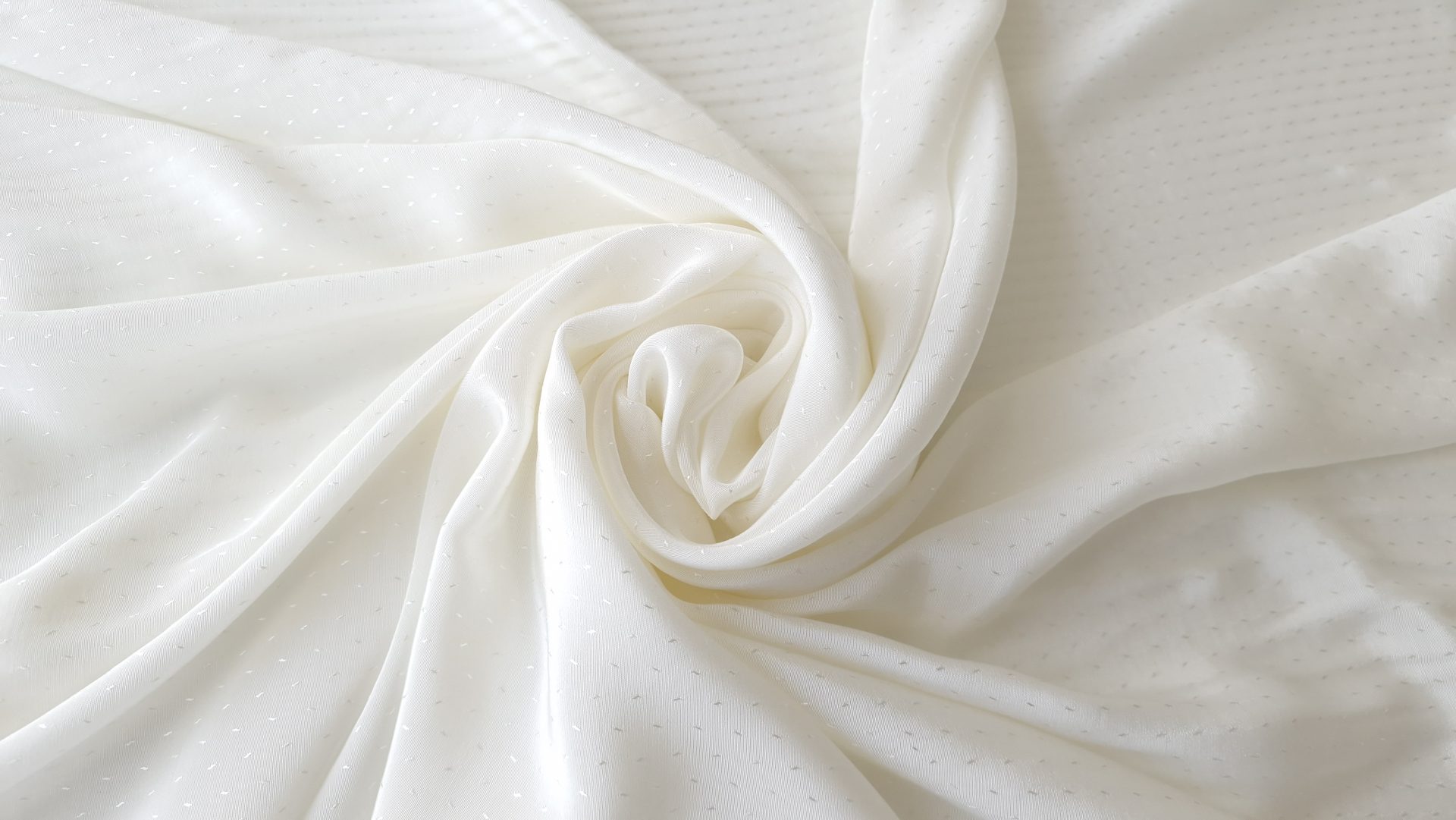 Tesatura din matase naturala si vascoza CAV11179, foarte placuta la atingere, model discret usor reliefat distribuit pe intreaga suprafata.Cu o textura opaca si lejera, materialul poate fi utilizat cu succes pentru confectionarea unor piese vestimentare precum rochii, fuste, camasi vaporoase potrivite sezonului cald.