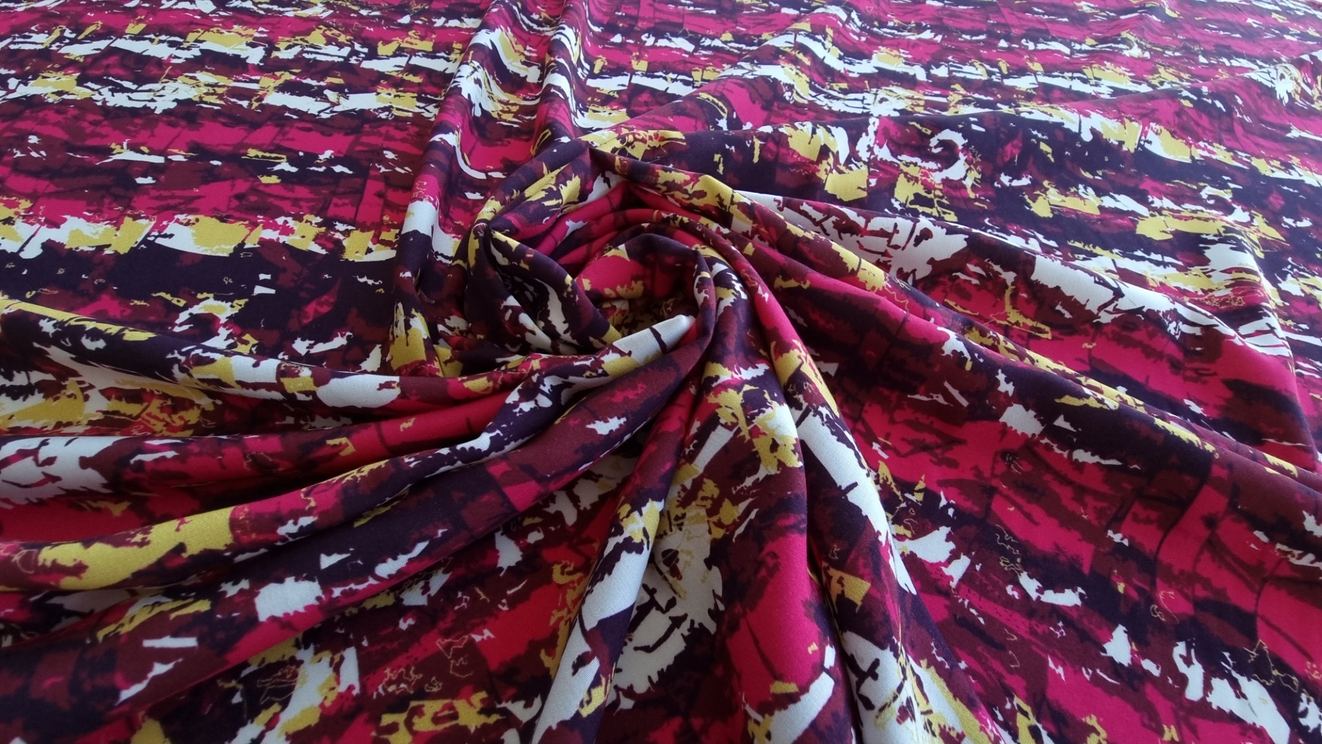 Tesatura subtire din 100% vascoza model imprimat, opaca, fara elastan si placuta la atingere.