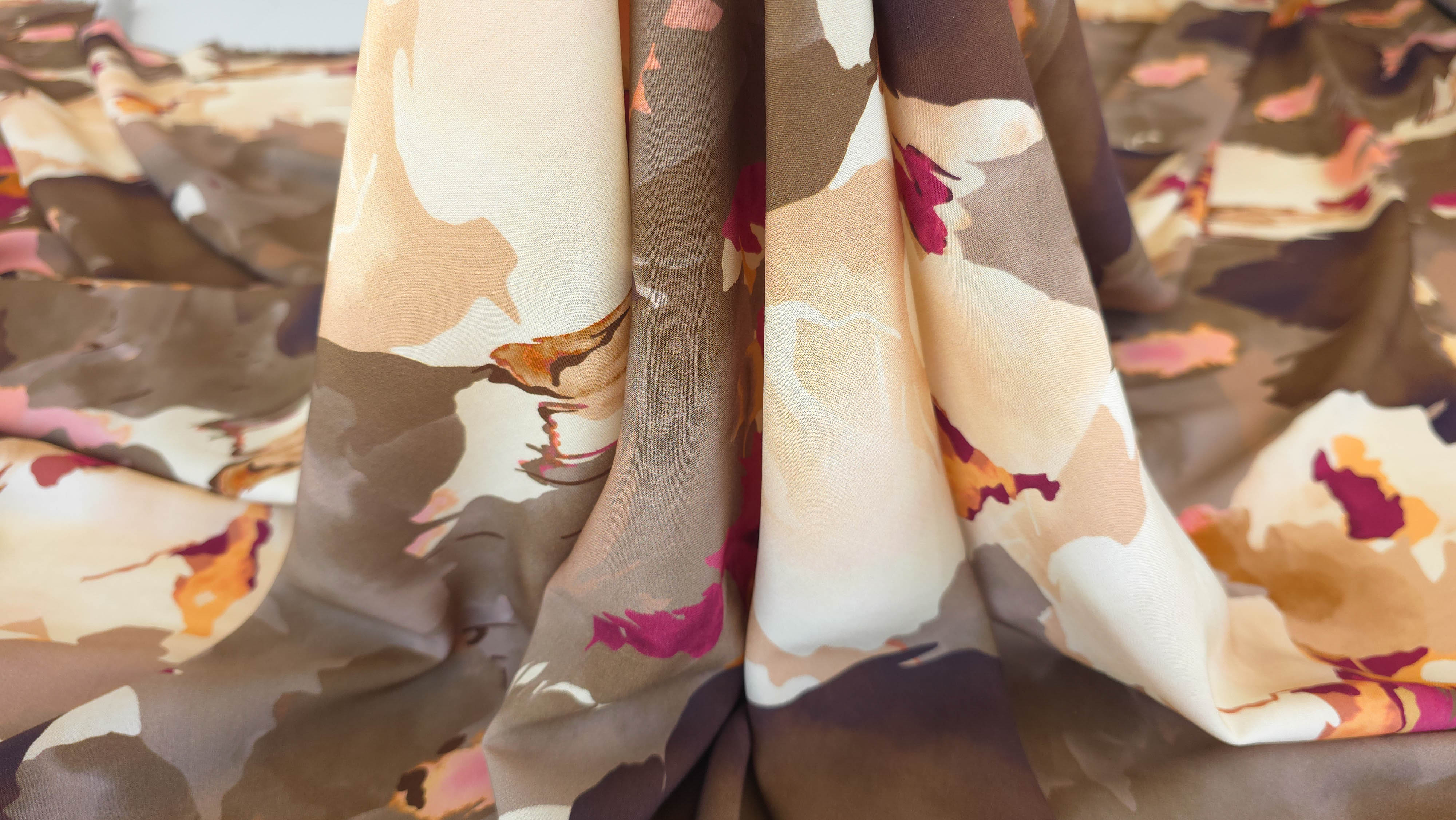 Satin mat din vascoza Bronzia, ușor, subțire și ideal pentru sezonul cald. Materialul are o textură fină, aspect mat și o cădere frumoasă, fiind confortabil și respirabil. Recomandat pentru rochii de vară, bluze lejere, salopete fluide sau fuste vaporoase, acest material oferă libertate de mișcare datorită conținutului de elastan. Imprimeul adaugă prospețime și un aer modern ținutelor de zi. Perfect pentru creații casual, feminine și ușor de purtat. Vă invităm să ne urmăriți și pe rețelele de socializare pentru a rămâne informați cu privire la ultimele noastre actualizări, oferte exclusive și surse de inspirație. Alăturați-vă comunității noastre online pe Facebook și Instagram. Vă așteptăm cu drag!