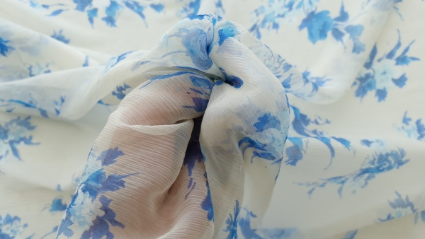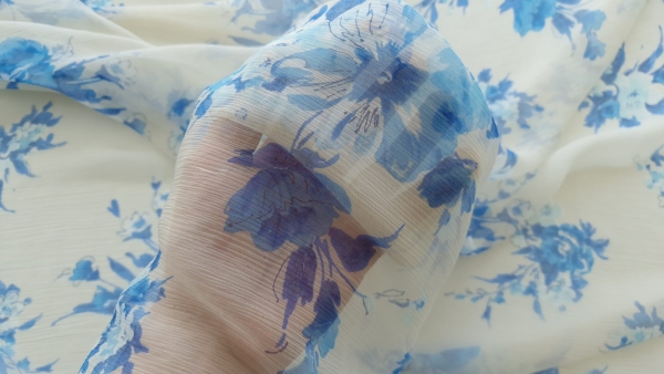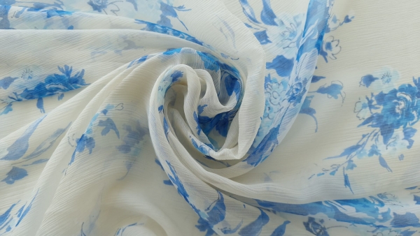 Voal creponat Muselina din matase naturala imprimata, pretabil pentru tinute lejere de vara, dar si pentru tinute elegante de seara.