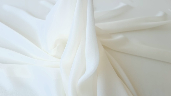 Voal Georgette din matase naturala ivory cream, cu textura vaporoasa, delicata si cu aspect pretios. Este un voal cu cadere, pretabil pentru rochii ample si vaporoase.