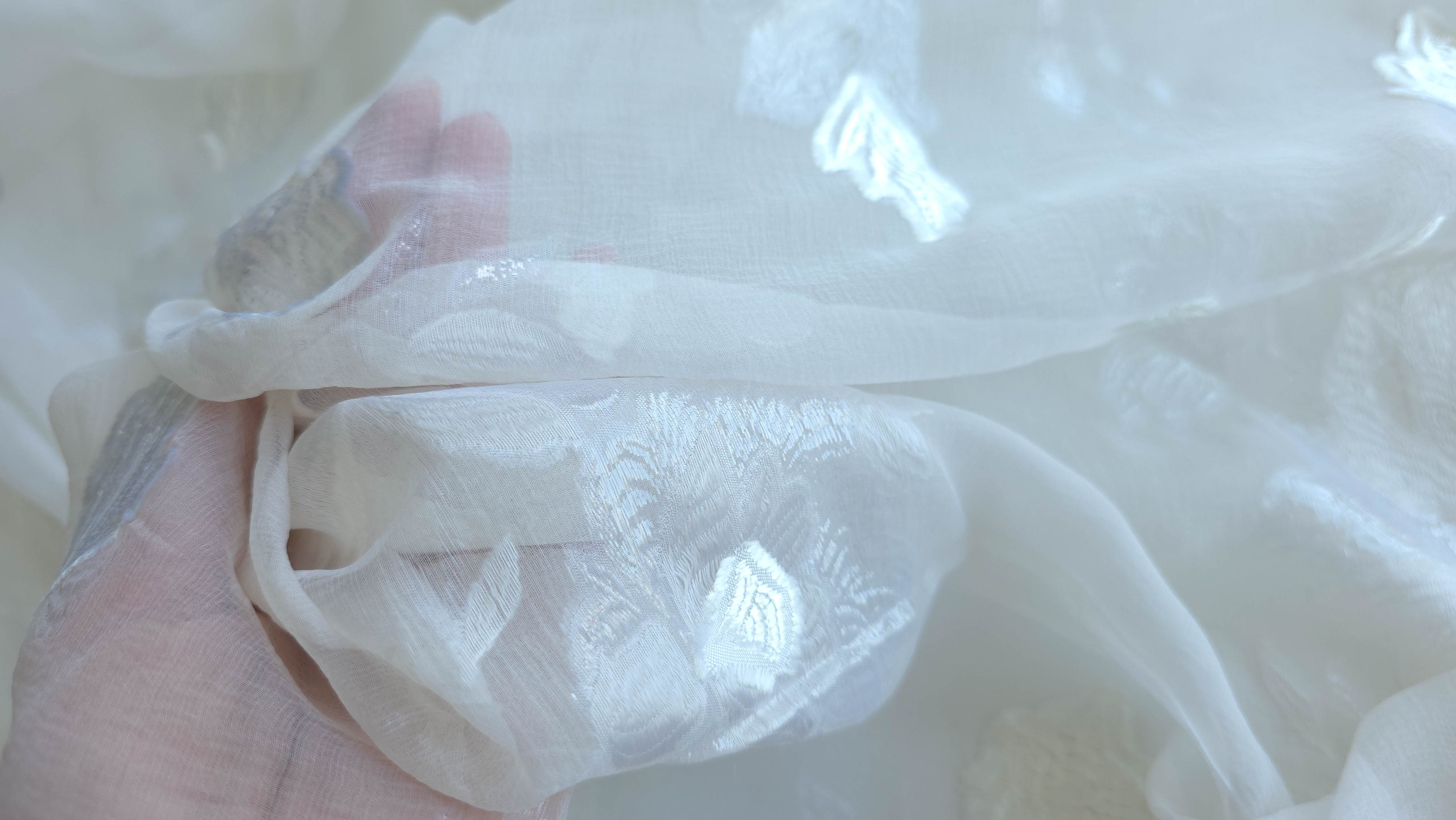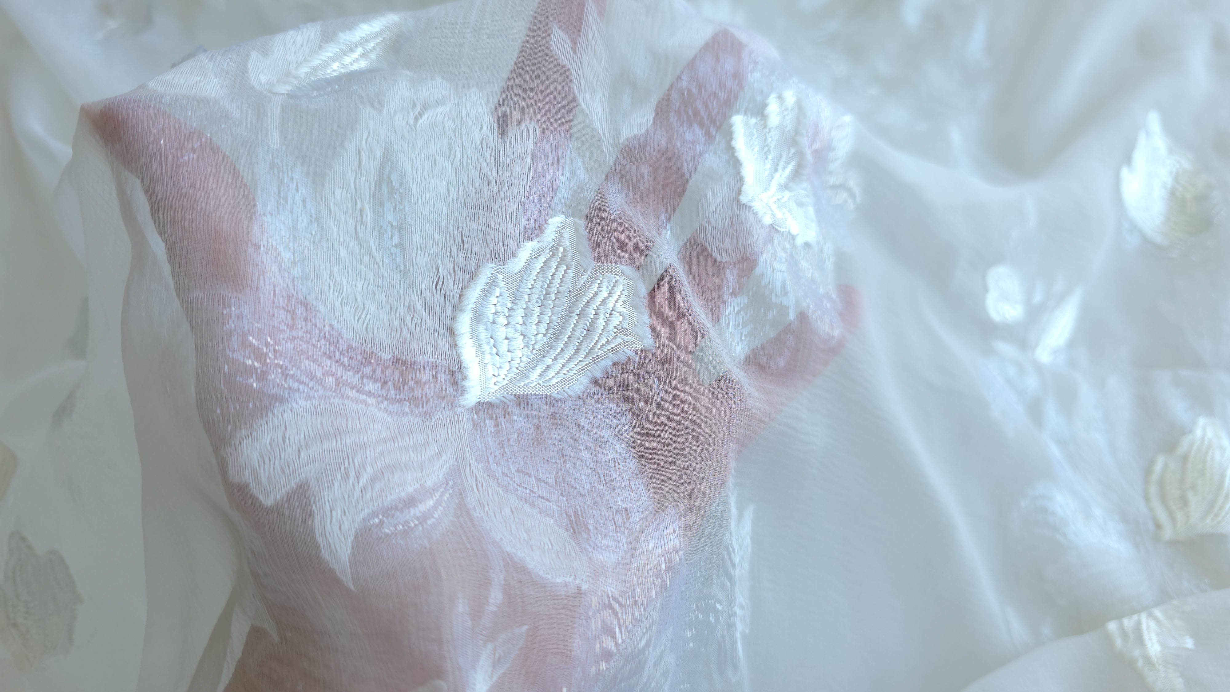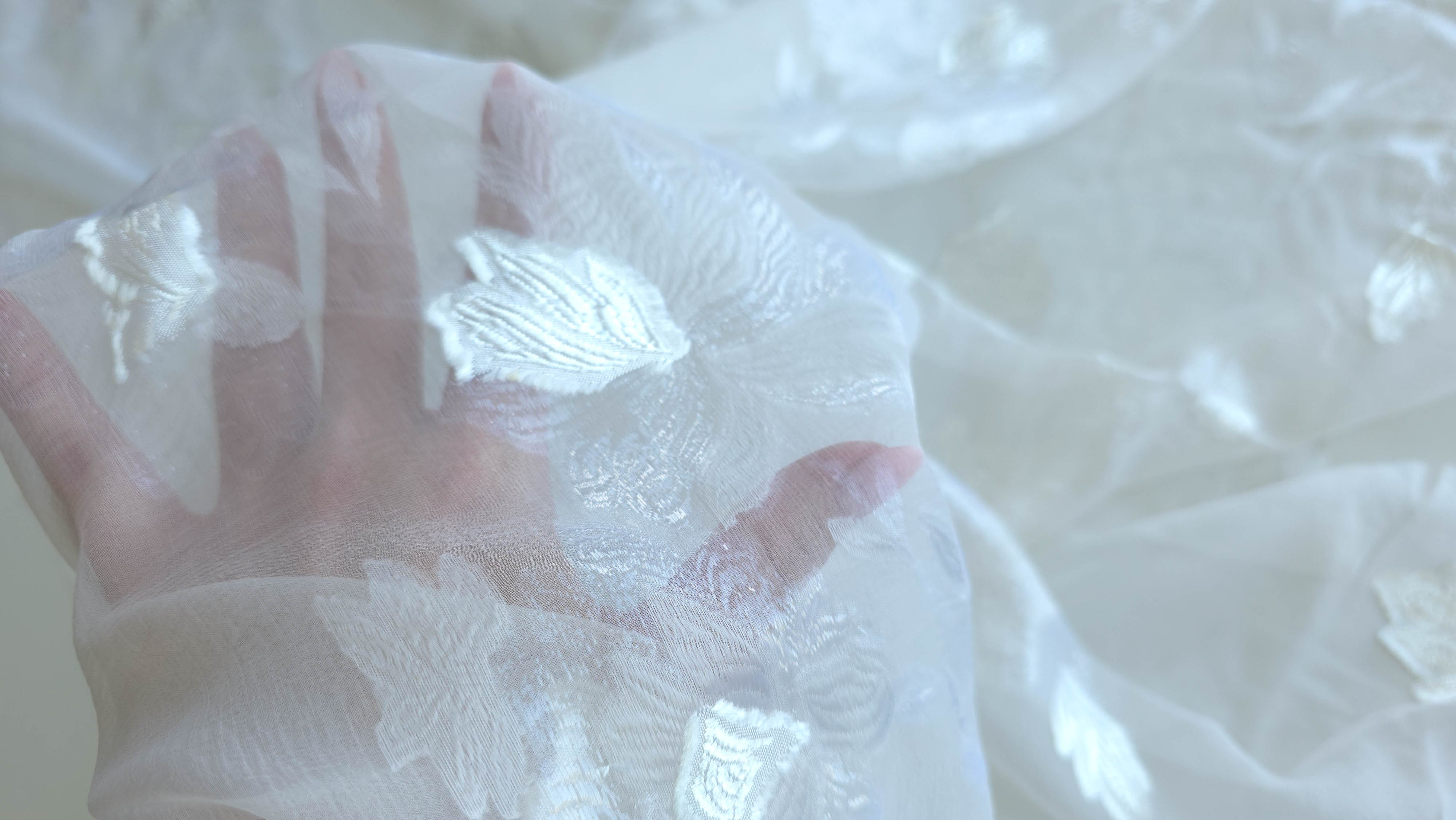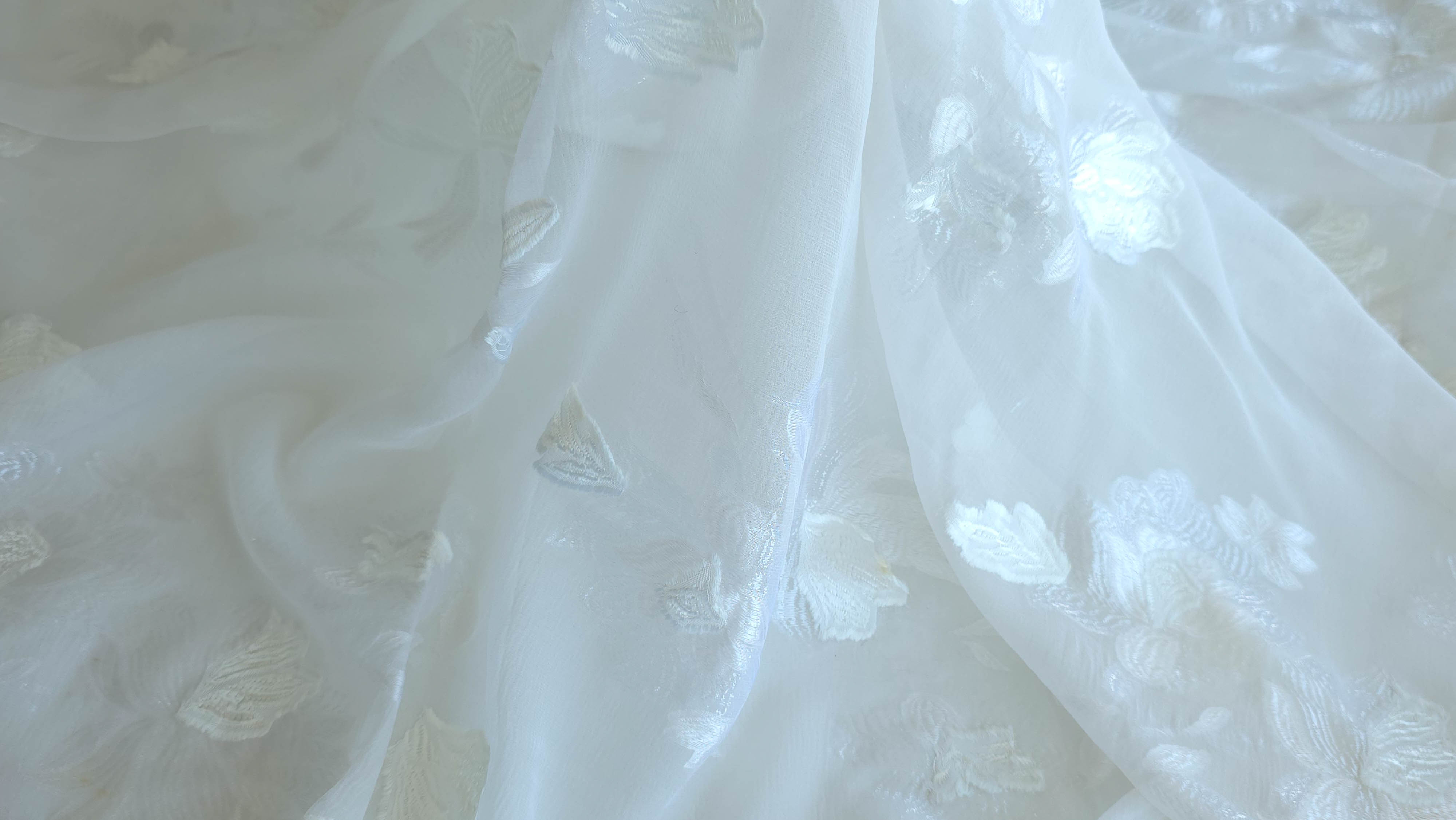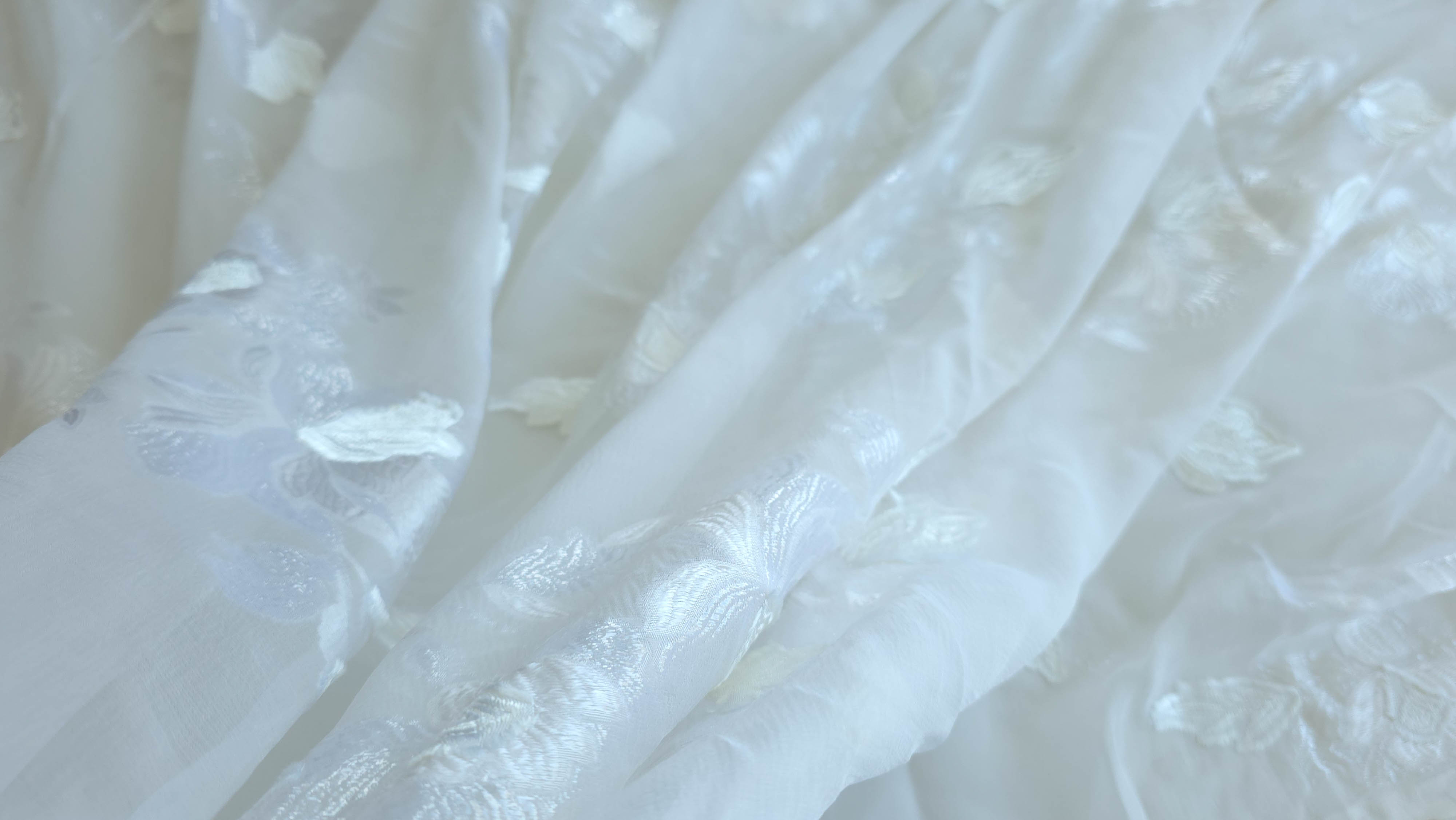 Voal brodat din matase naturala ivory țesătură vaporoasă cu broderie florală în nuanțe ivoire și accente fine strălucitoare. Ideal pentru rochii de vară, fuste elegante sau bluze lejere, oferind lejeritate și un aspect prețios. Se recomandă utilizarea unei căptușeli lejere din fibre naturale pentru un plus de confort. Vă invităm să ne urmăriți și pe rețelele de socializare pentru a rămâne informați cu privire la ultimele noastre actualizări, oferte exclusive și surse de inspirație. Alăturați-vă comunității noastre online pe Facebook și Instagram. Vă așteptăm cu drag!
