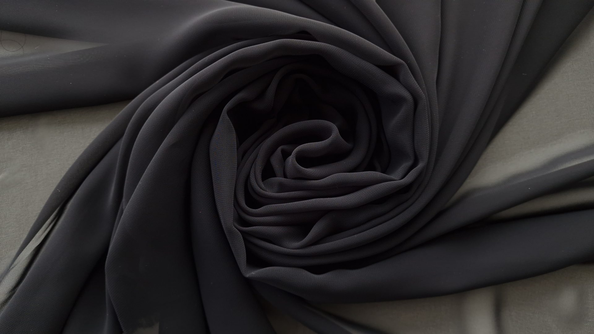 Voal Chiffon negru cu vascoza si elastan, cu textura vaporoasa, delicata si cu aspect pretios. Este un voal cu cadere, pretabil pentru rochii ample si vaporoase.