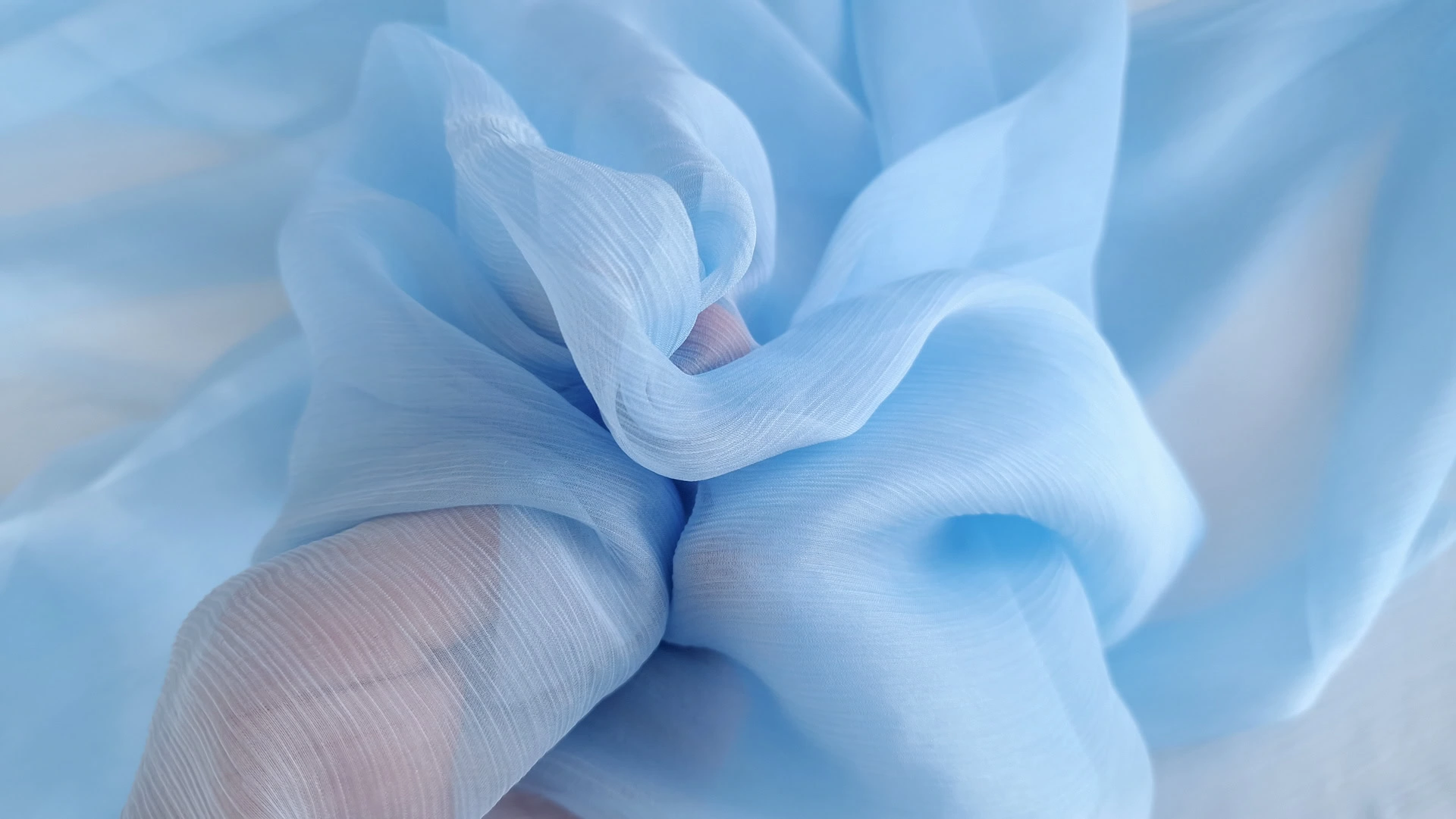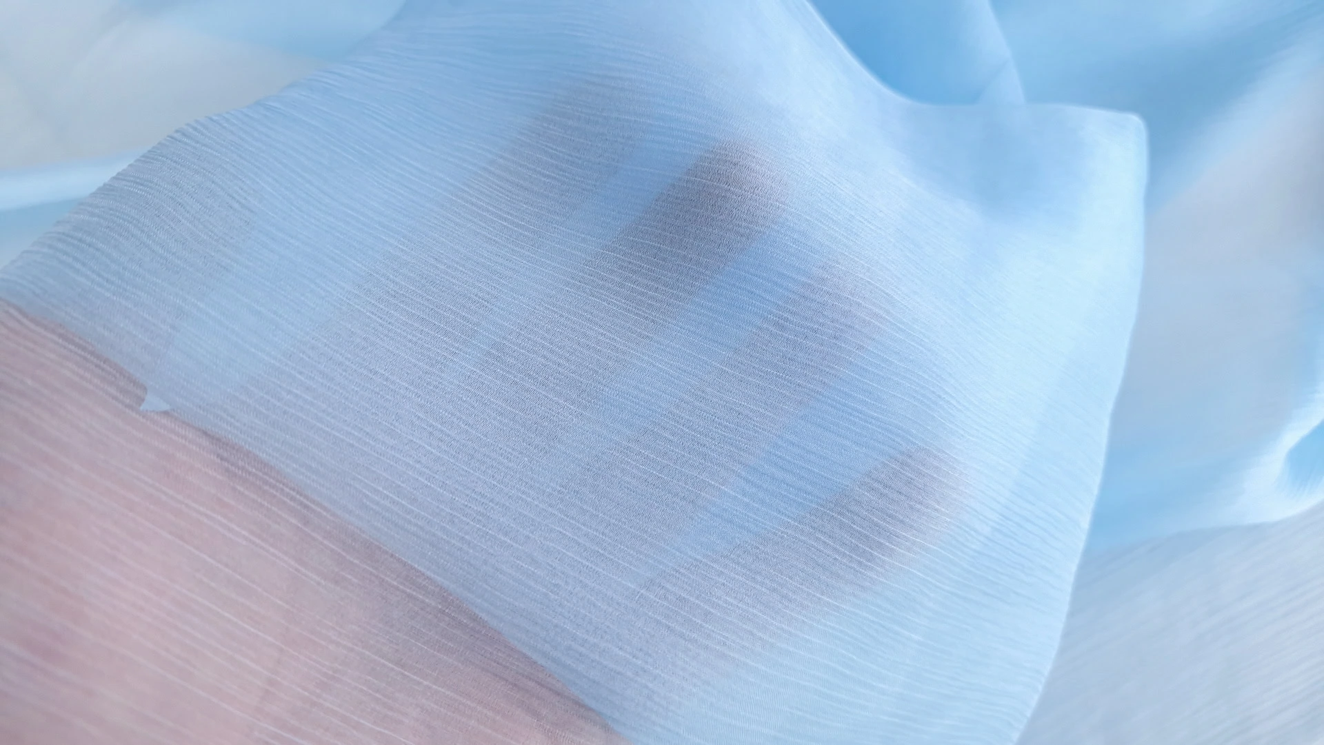 Caracteristici Voal creponat arctic blue Muselina din matase naturala: