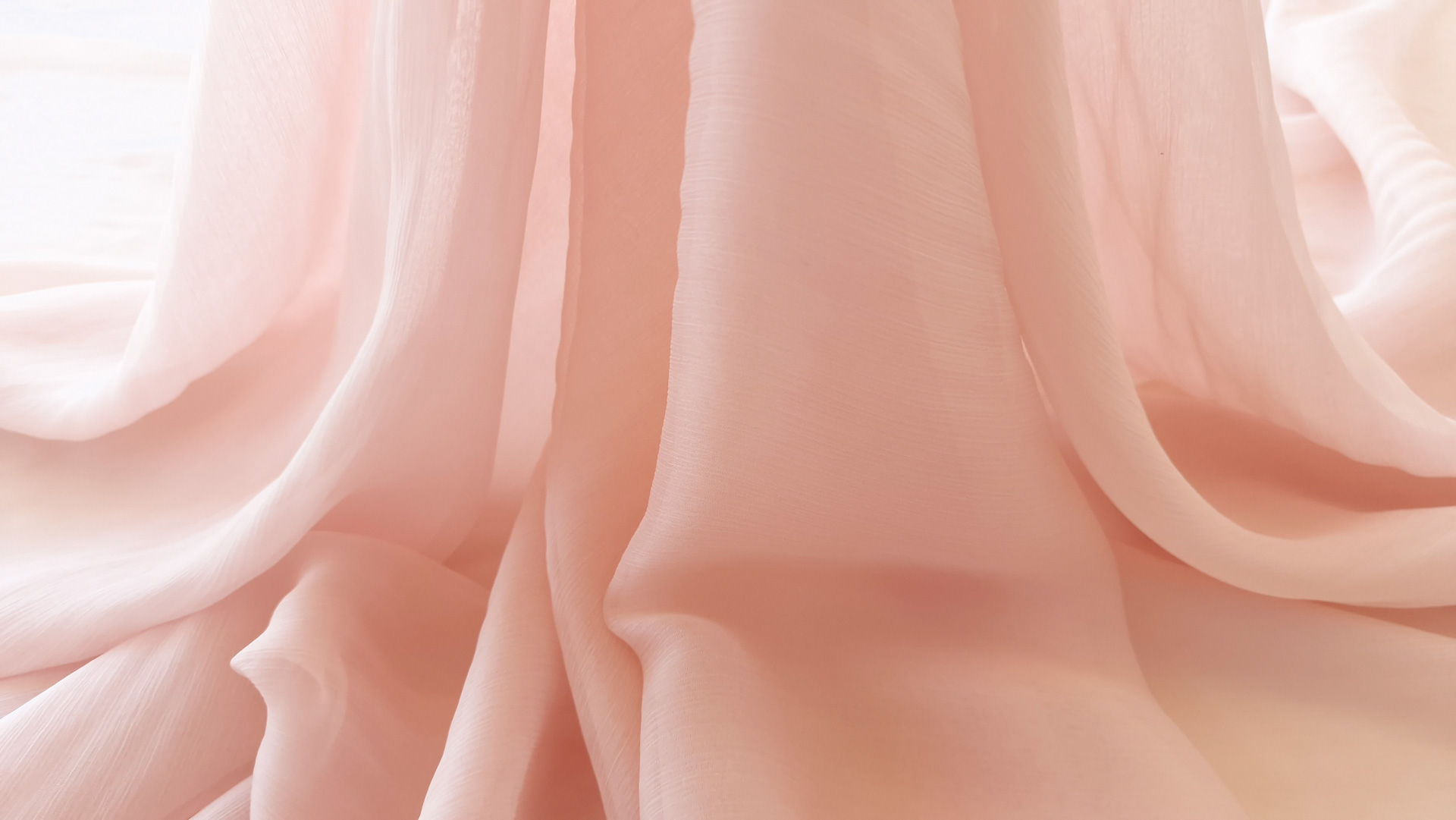 Voal creponat Muselina din matase naturala Light Peach Rose, subtire, fin, transparent, foarte placut la atingere.