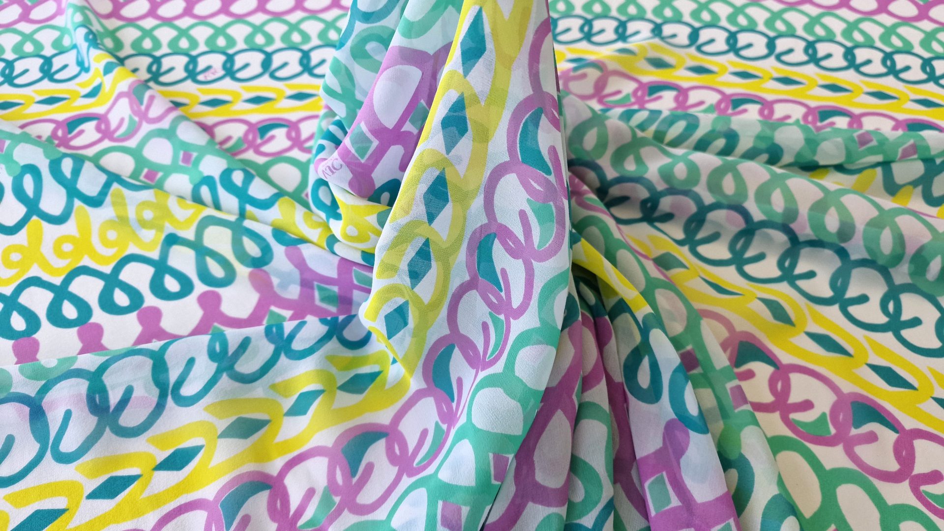 Caracteristici Voal Georgette din matase naturala Multicolor Chains VER1289: