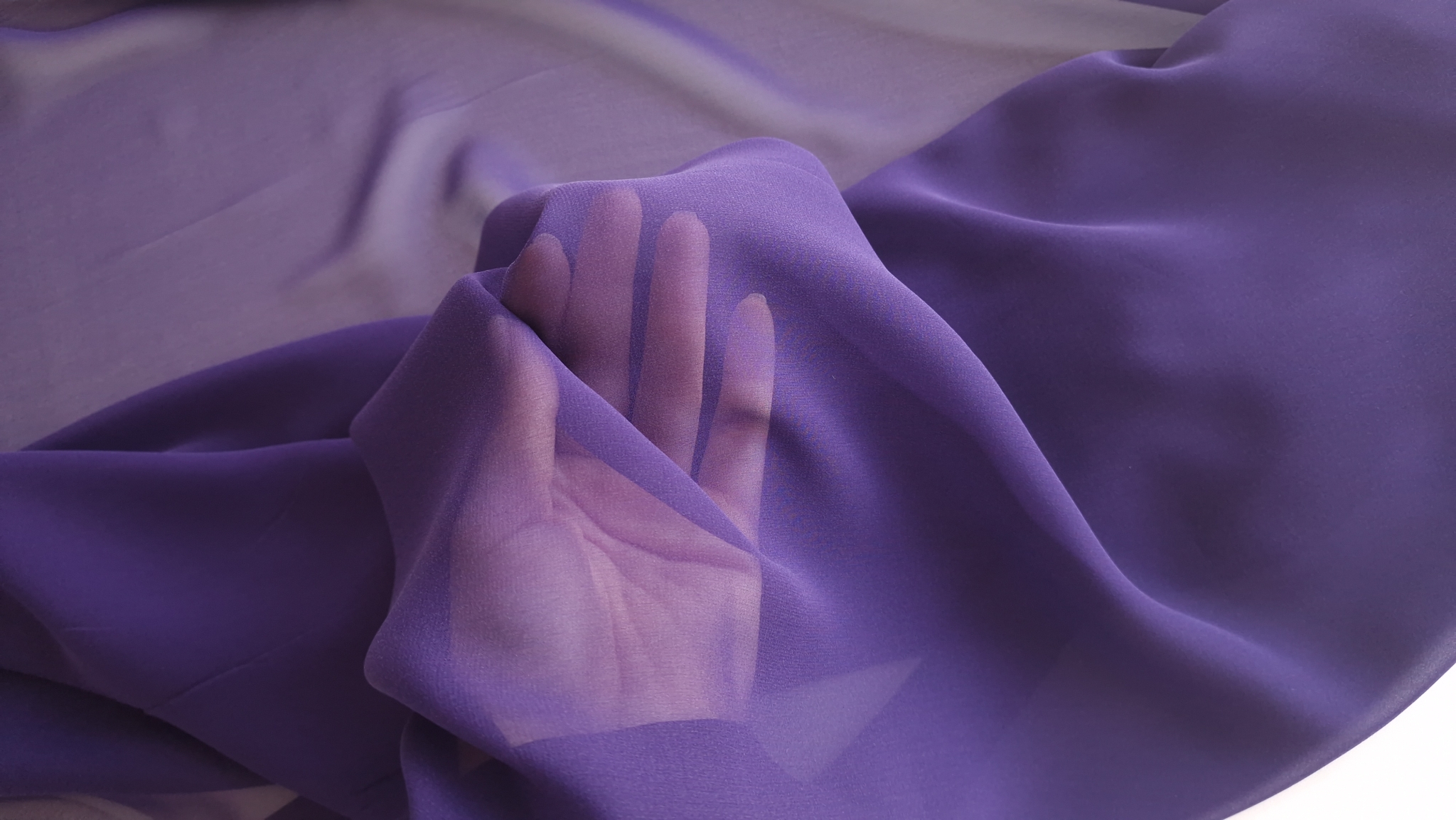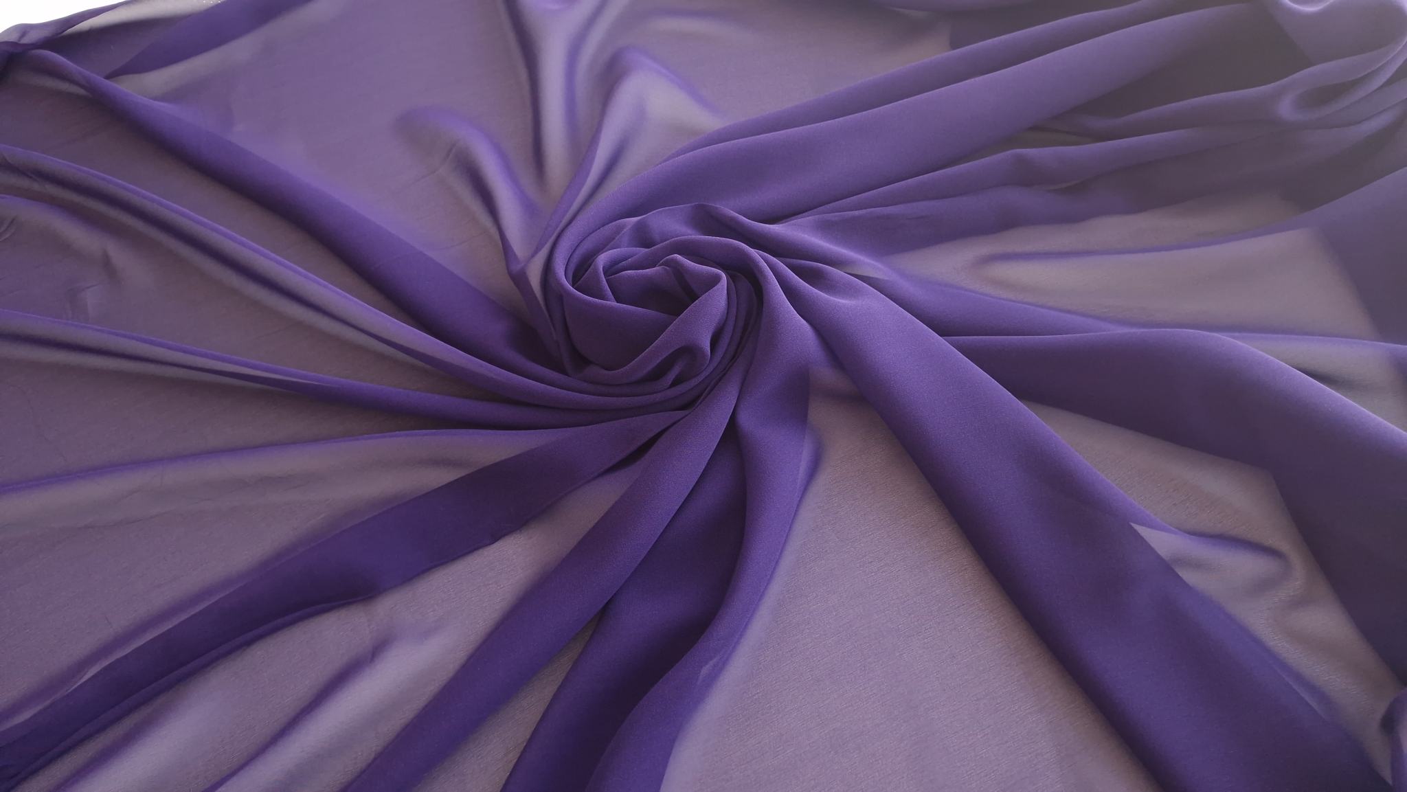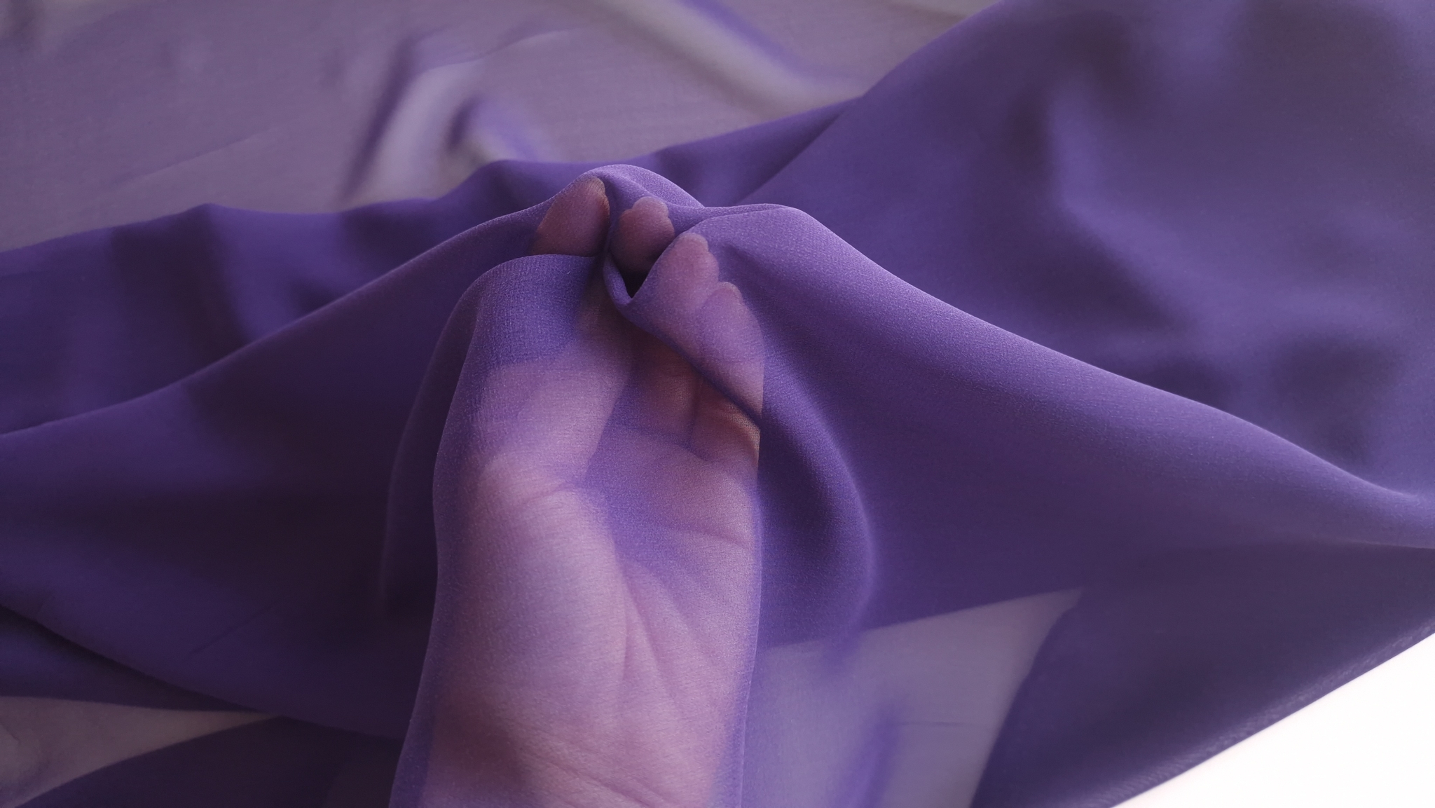 Voal Georgette violet matase naturala, material versatil perfect pentru orice sezon și ocazie fiind alegerea perfectă pentru rochii vaporoase, bluze sofisticate sau eșarfe fine, oferind o textură mătăsoasă și o drapare impecabilă. Fabricat din mătase naturală, acest voal este fin și plăcut la atingere, oferind confort și eleganță în purtare. Crepajul subtil al materialului adaugă un efect vizual atrăgător, conferind fiecărei piese vestimentare un aspect modern.