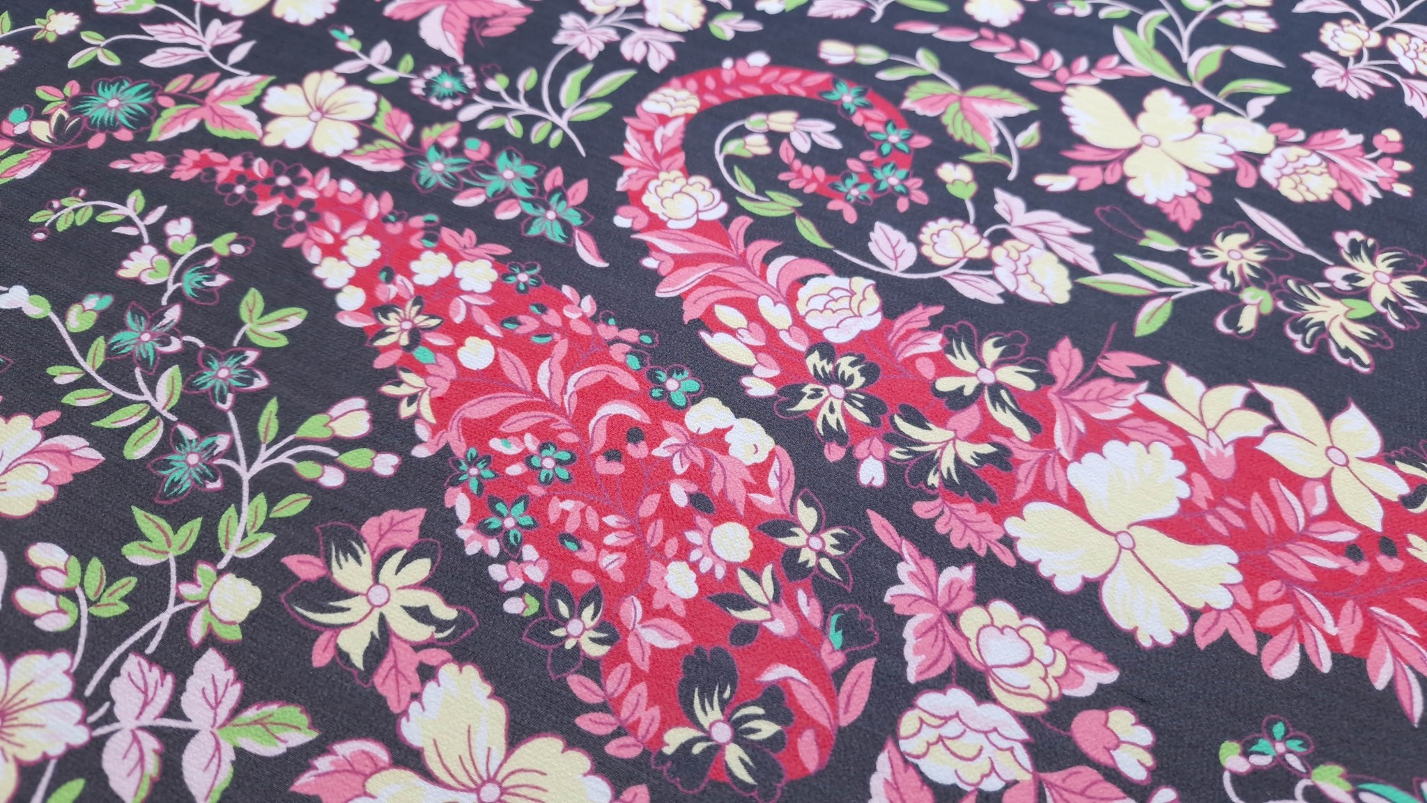 Voal chiffon design Etro din matase naturala, țesătură premium din 100% mătase naturală, cu imprimeu floral paisley , ce îmbină rafinamentul clasic cu un design modern și îndrăzneț. Ușor, vaporos și cu o cădere grațioasă, această țesătură este ideală pentru rochii, bluze sau eșarfe care emană stil și personalitate. Alegerea perfectă pentru creații vestimentare elegante, care adaugă un plus de originalitate garderobei Vă invităm să ne urmăriți și pe rețelele de socializare pentru a rămâne informați cu privire la ultimele noastre actualizări, oferte exclusive și surse de inspirație. Alăturați-vă comunității noastre online pe Facebook și Instagram. Vă așteptăm cu drag!