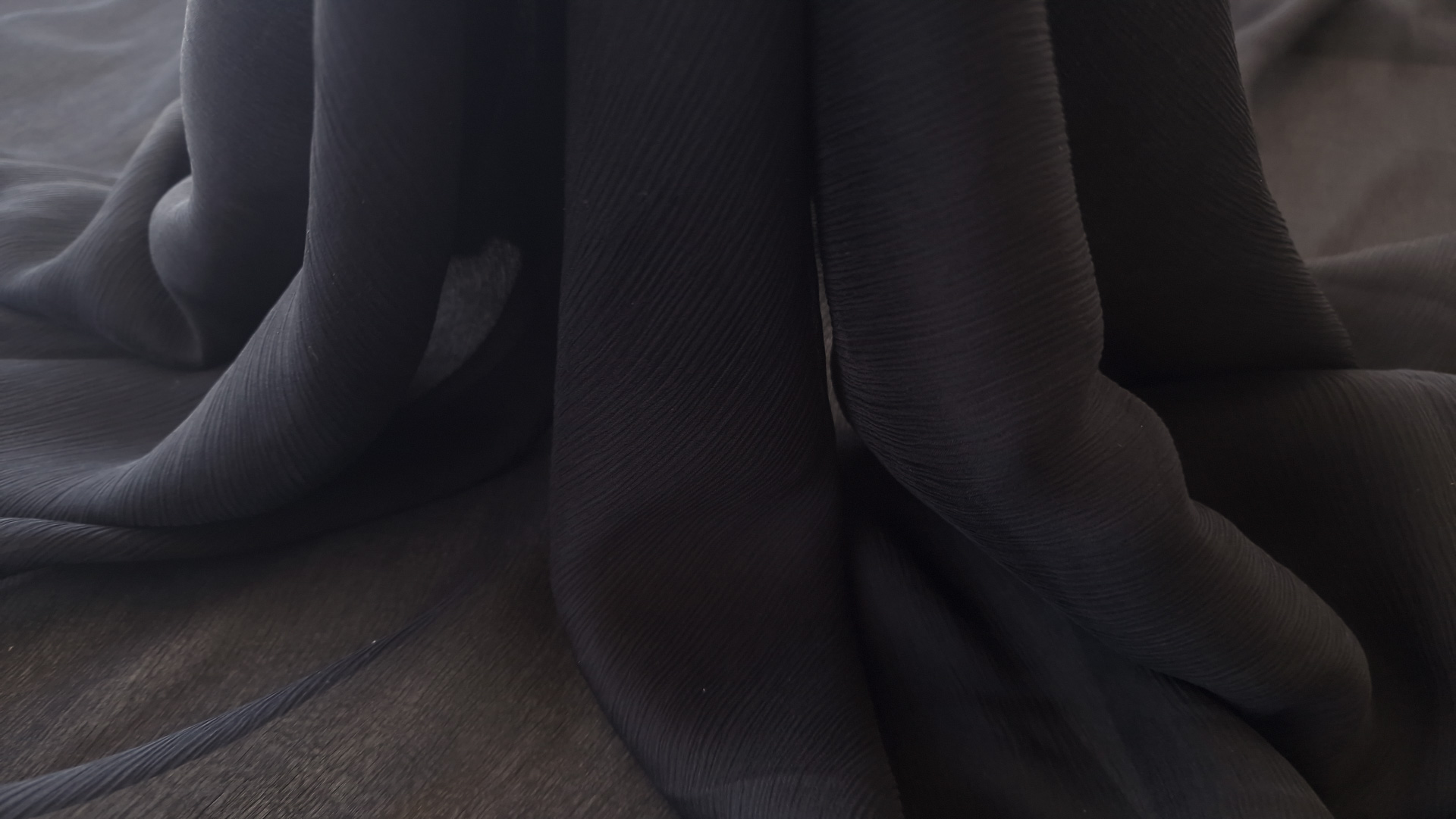 Caracteristici Voal creponat negru Muselina din matase naturala
